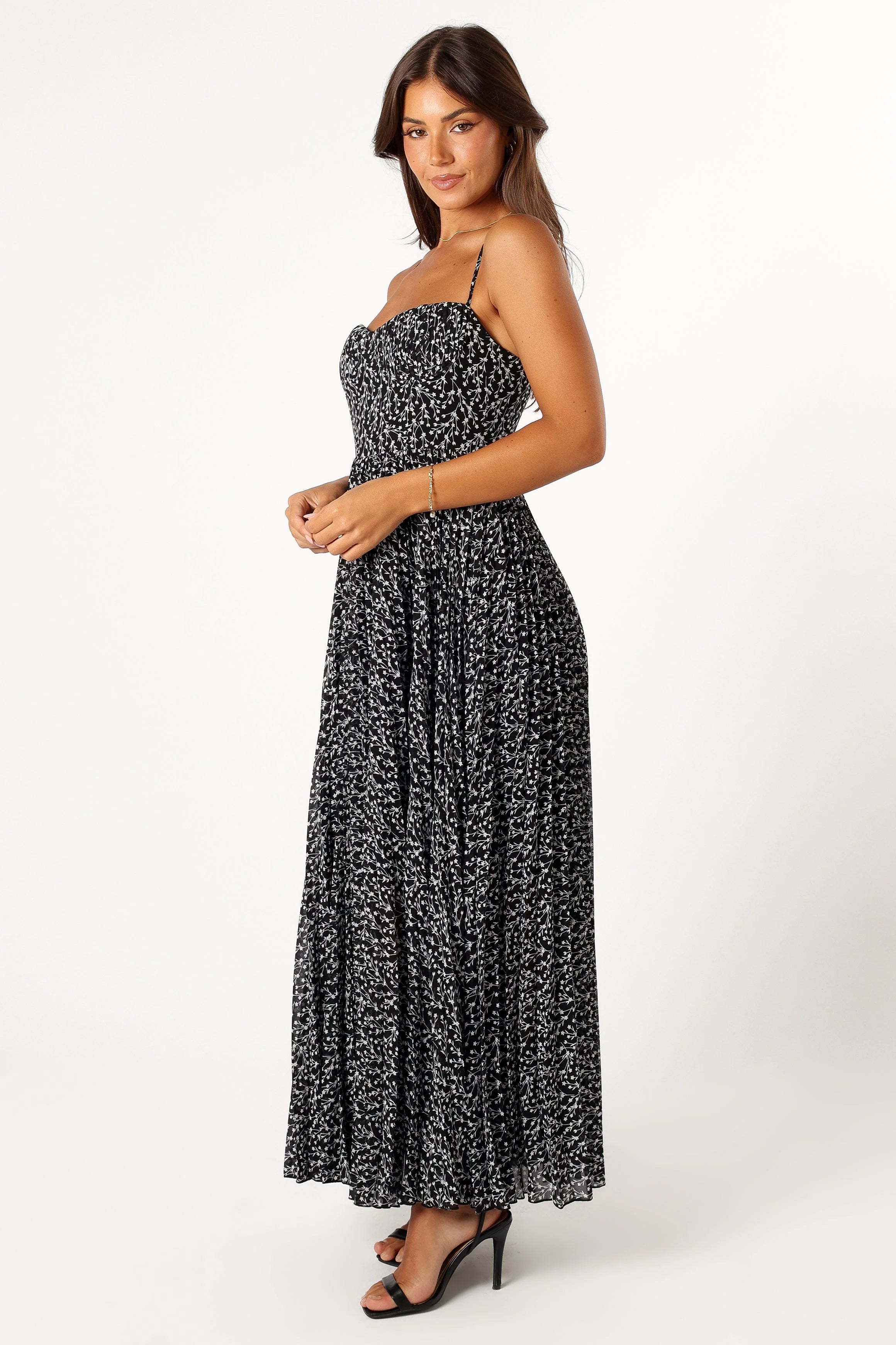 DETAILS This gorgeous maxi dress is a must-have for your wardrobe. Every detail exudes sophistication - from the sweetheart neckline, thin adjustable straps, and padded cups with underwire in the bust, to the back shirred panel and invisible zipper at the back.