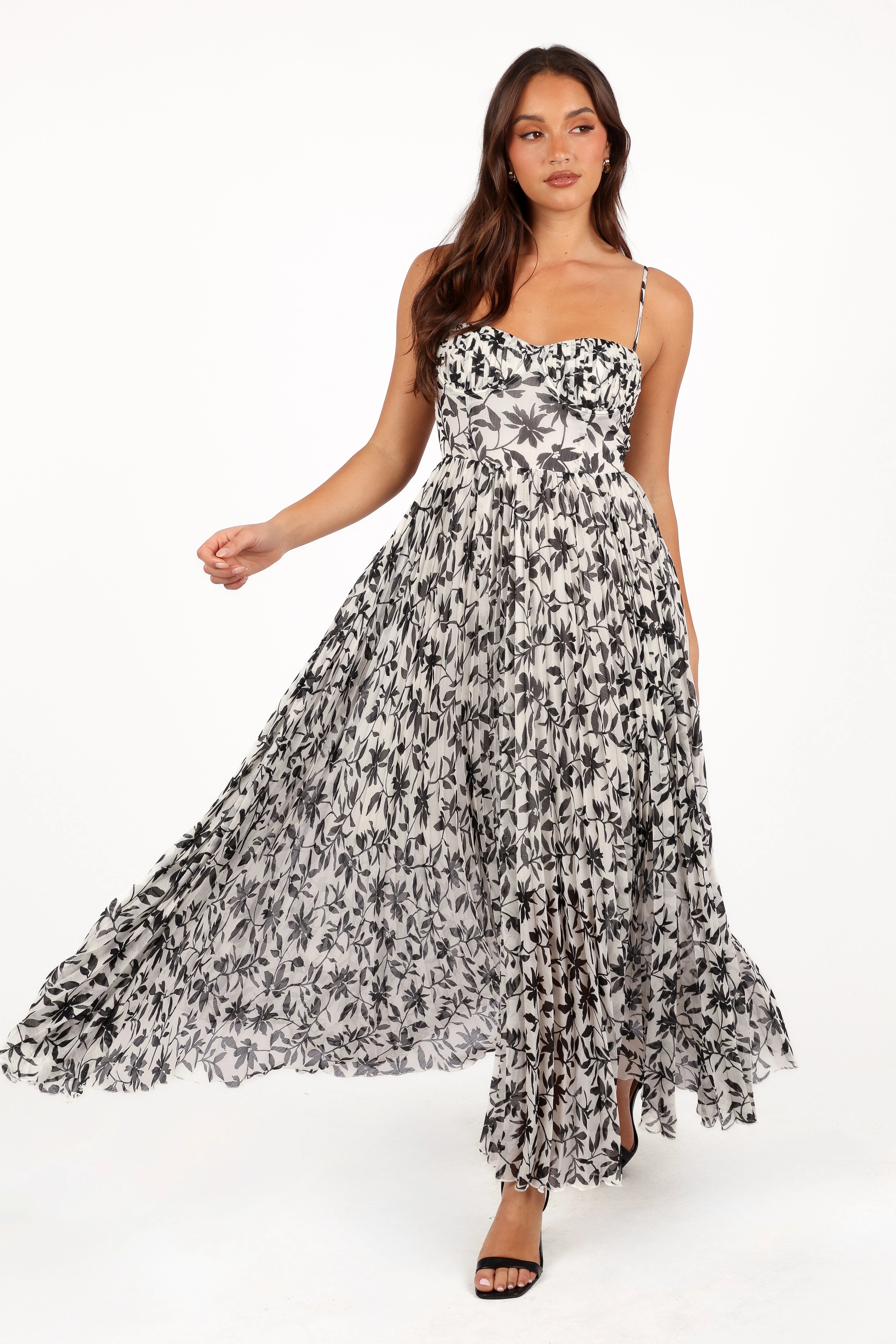 DETAILS This gorgeous maxi dress is a must-have for your summer wardrobe. Every detail exudes sophistication - from the sweetheart neckline, thin adjustable straps, and padded cups with underwire in the bust, to the back shirred panel and invisible zipper at the back.
