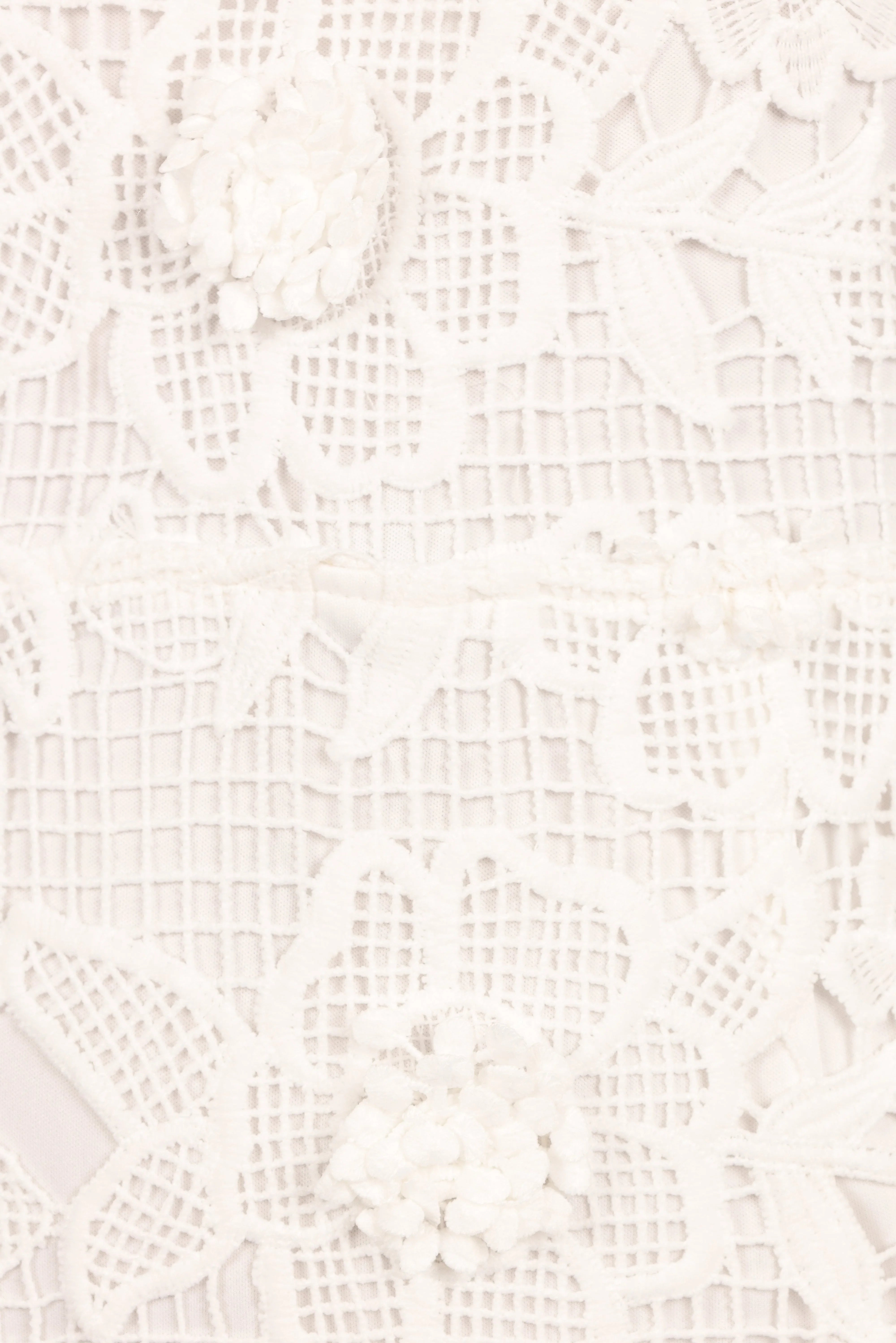 DETAILS Designed for the fashion-forward woman who appreciates intricate details and sophisticated style, this dress promises to be a standout addition to your wardrobe. Featuring a delicate floral lace overlay, this midi-length dress exudes a romantic charm.