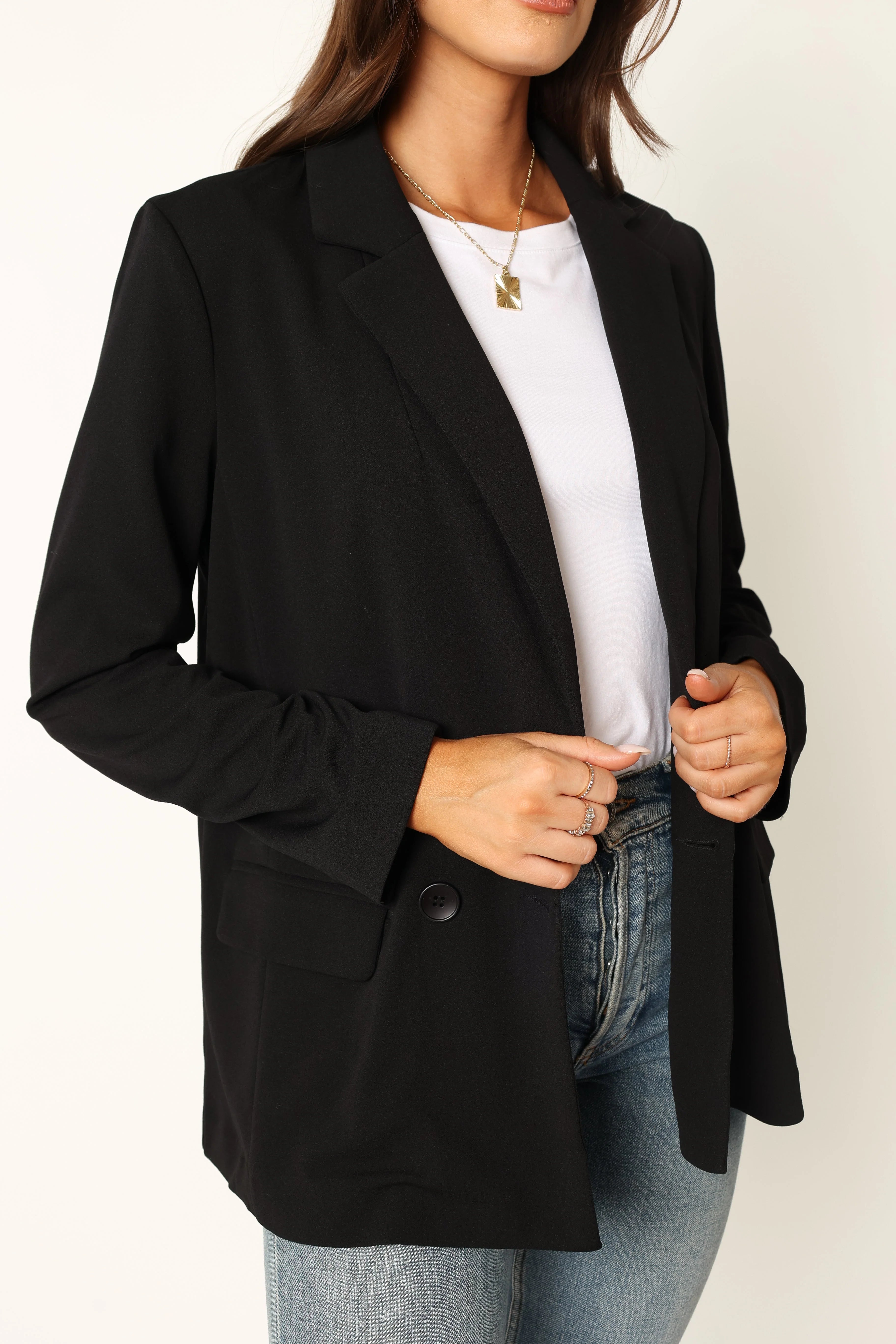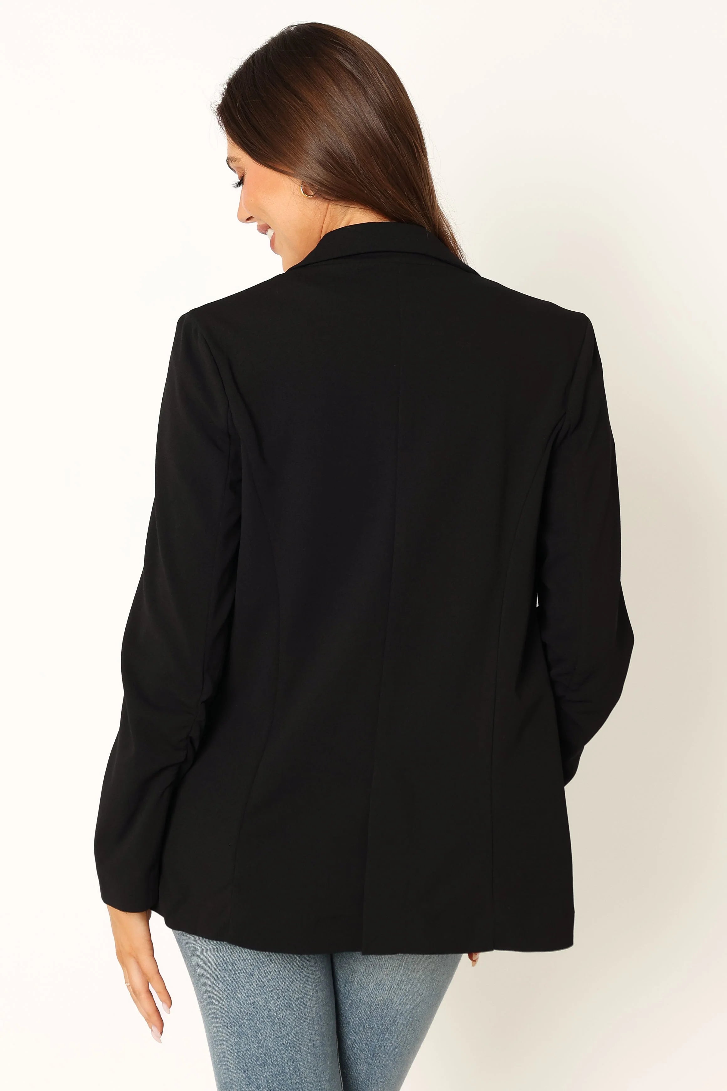 DETAILS This blazer is the perfect addition to your workwear wardrobe! Perfect for layering over a crisp shirt or silk cami, it features a classic collar with notch lapels and long sleeves finished with gathered detail.