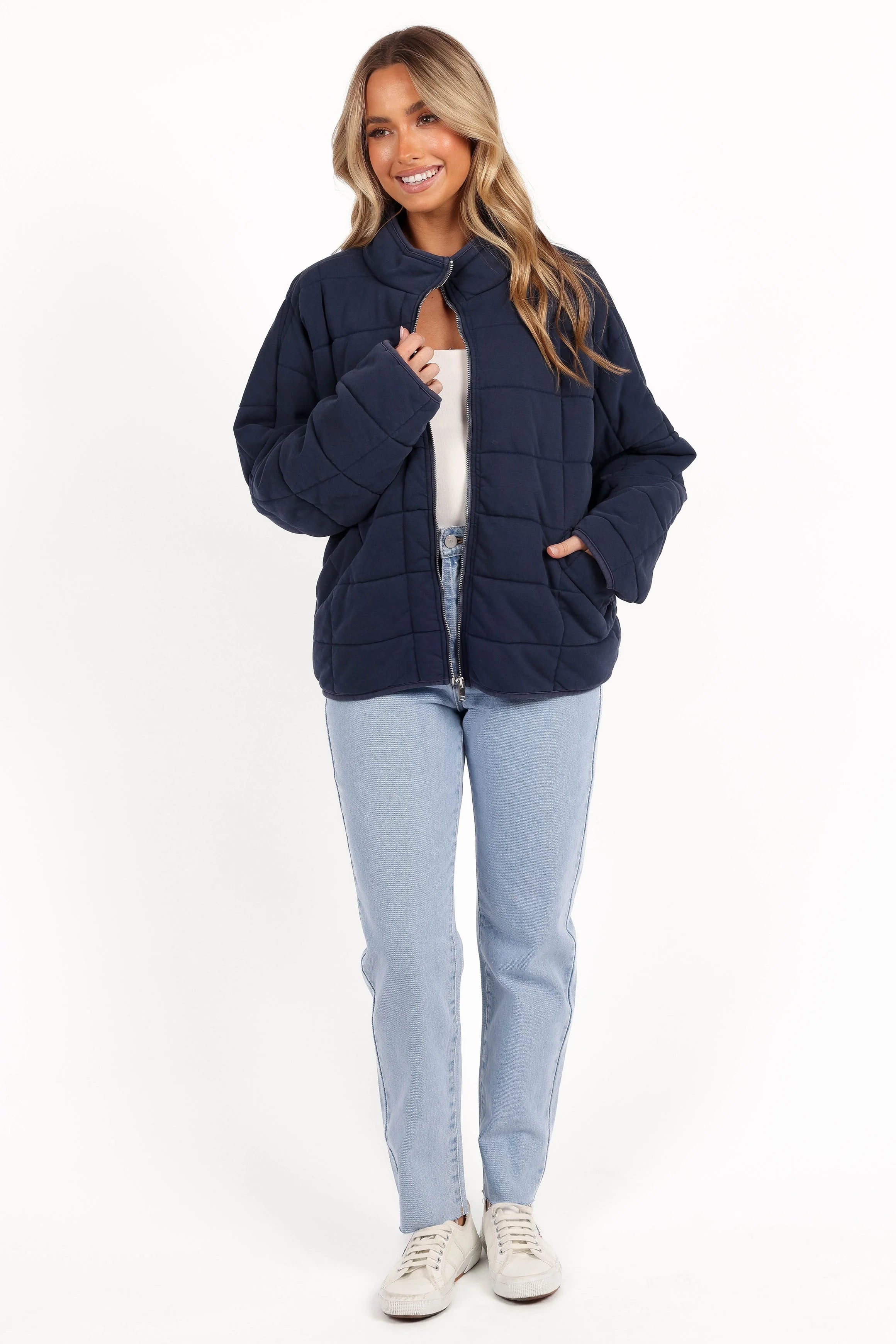 | DETAILS Elevate your wardrobe with our chic and functional quilted jacket, designed to keep you warm and stylish throughout the seasons. Ideal for layering over your favorite sweaters or pairing with jeans, our quilted jacket is a versatile addition to your collection.