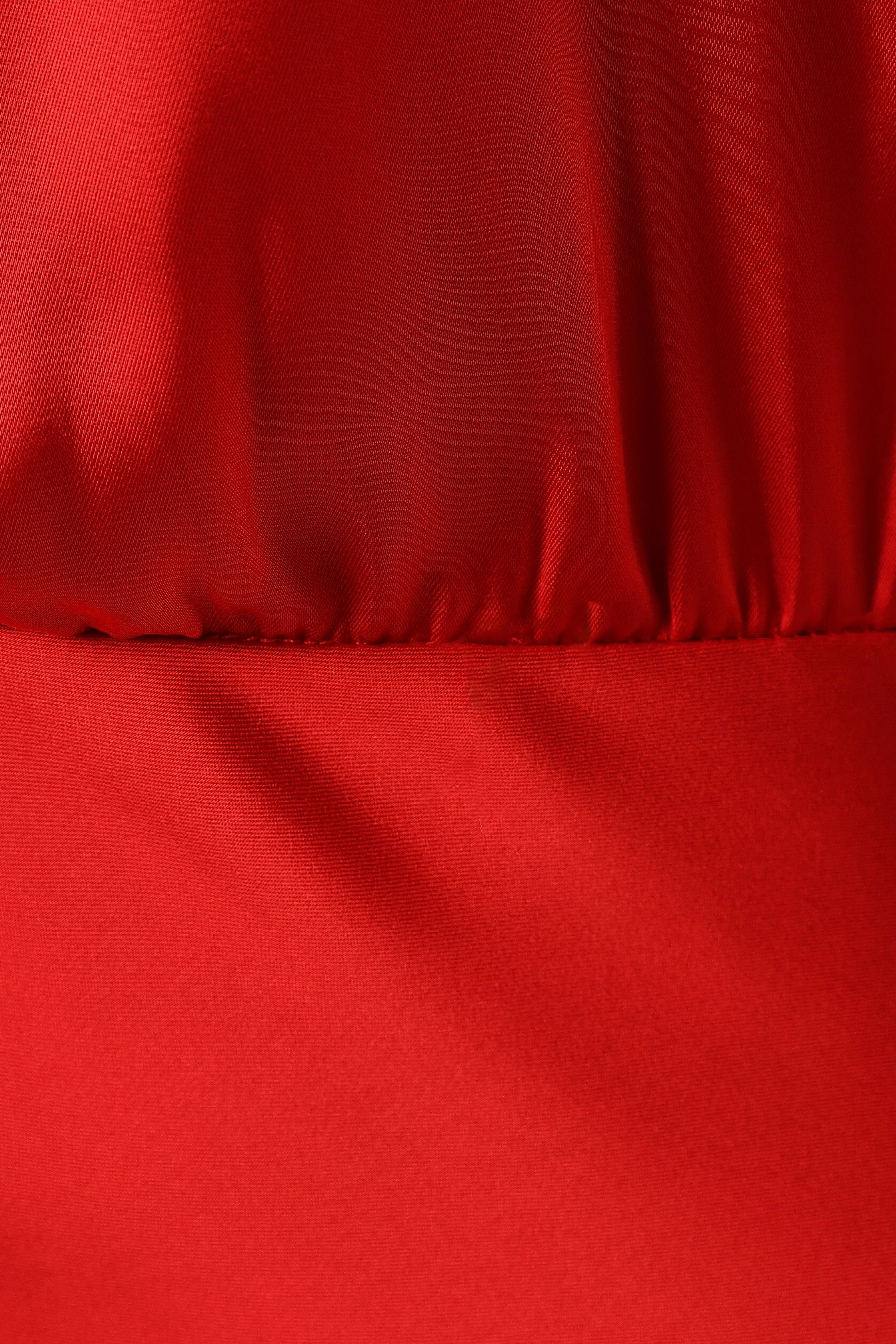 DETAILS Look and feel your best in this stunning event wear dress! Featuring a midi length, an asymmetric high round neckline with gathered pleat detail, plus a back neck opening with button close, it's the perfect party dress for any special occasion. Not only does it look fabulous, but it feels as good as it looks too. Crafted from a soft satin feel just for extra comfort.