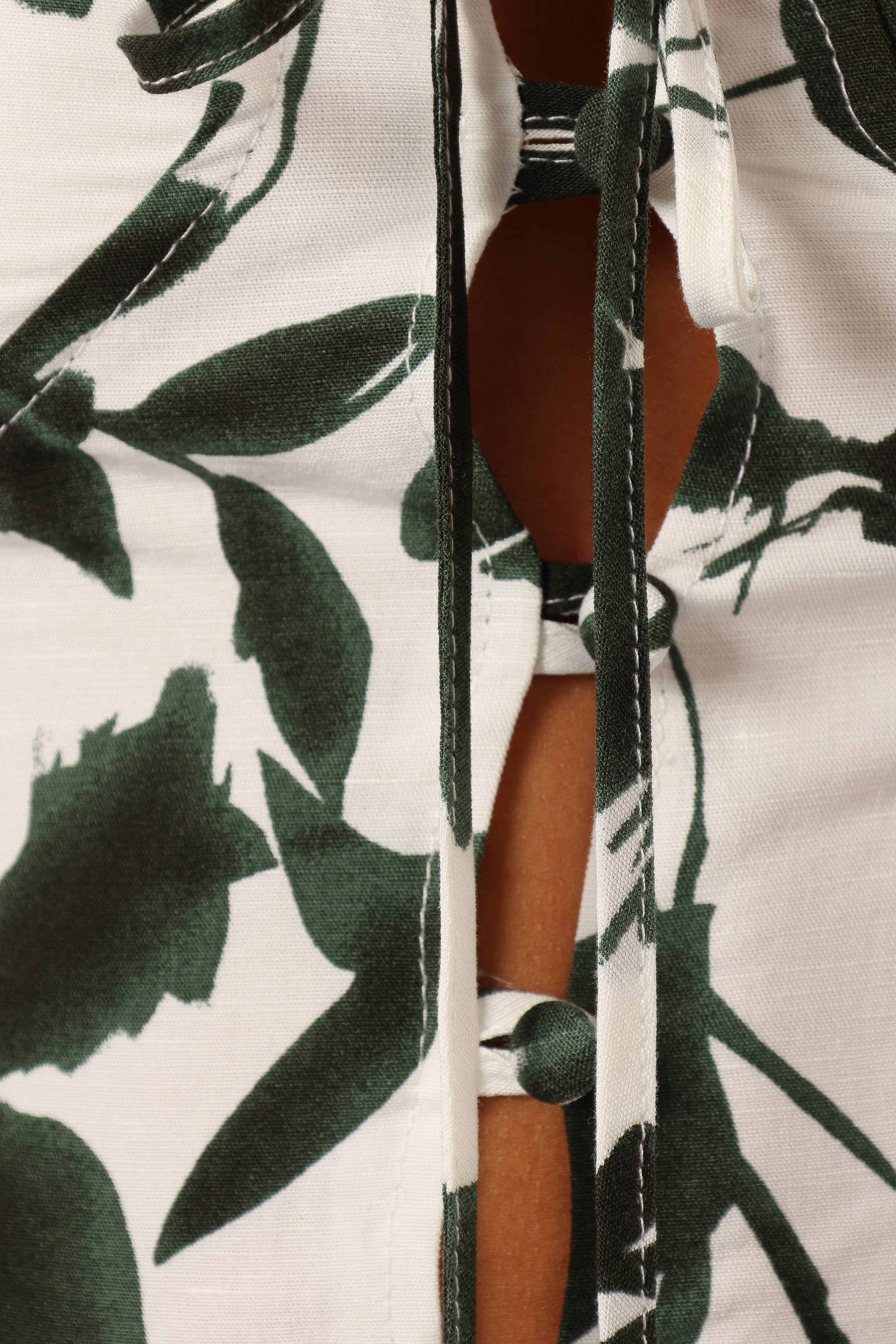 | DETAILS This chic green palm print top effortlessly combines modern style with timeless elegance. The sweetheart neckline and lace details add a touch of romance, while the adjustable straps ensure a perfect fit.