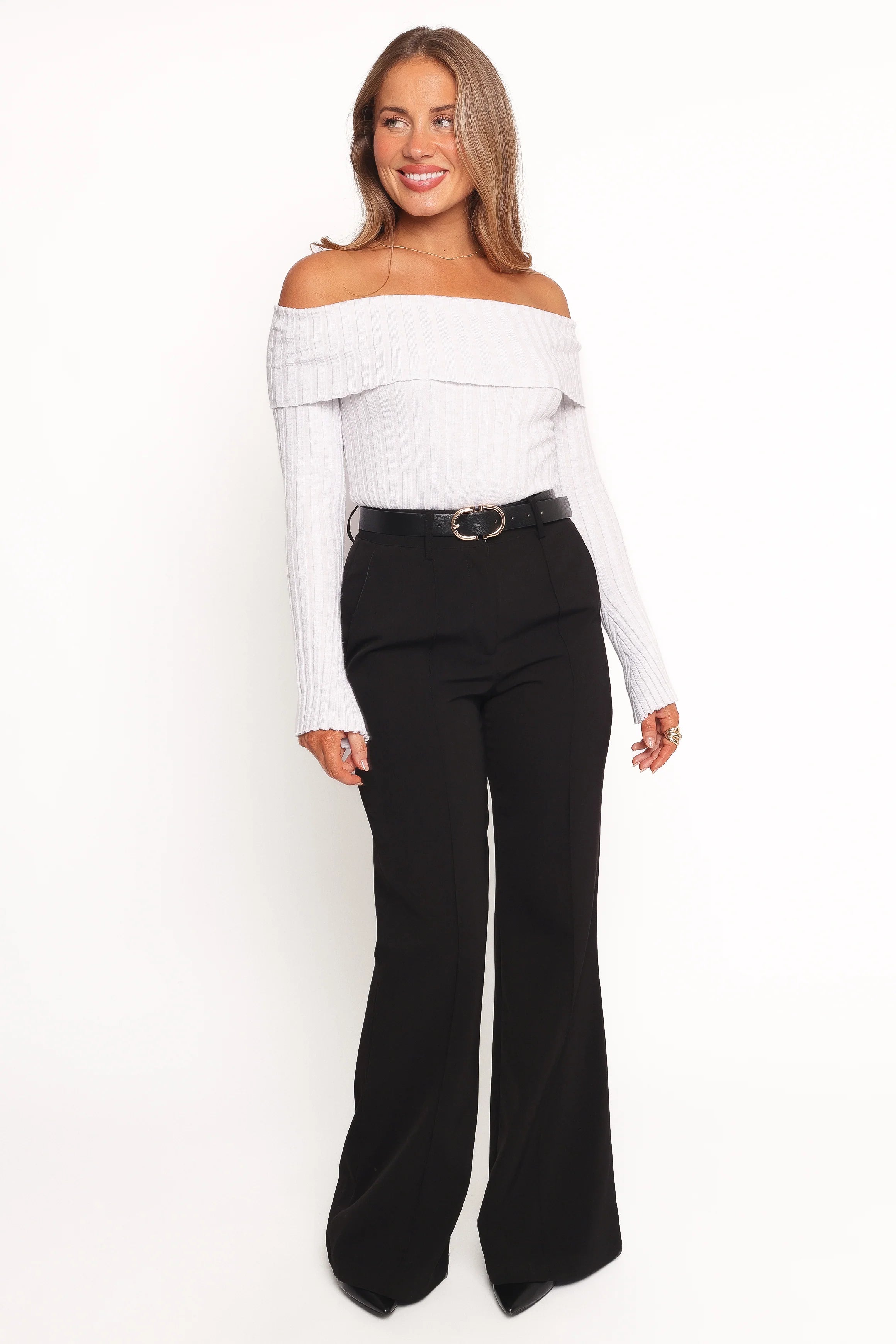 DETAILS Effortlessly chic, the Anderson Wide Rib Off Shoulder Top in Pastel Grey is the statement piece your wardrobe has been waiting for. Its off-shoulder design and straight neckline with a folded detail make it every bit as modern as it is timeless.