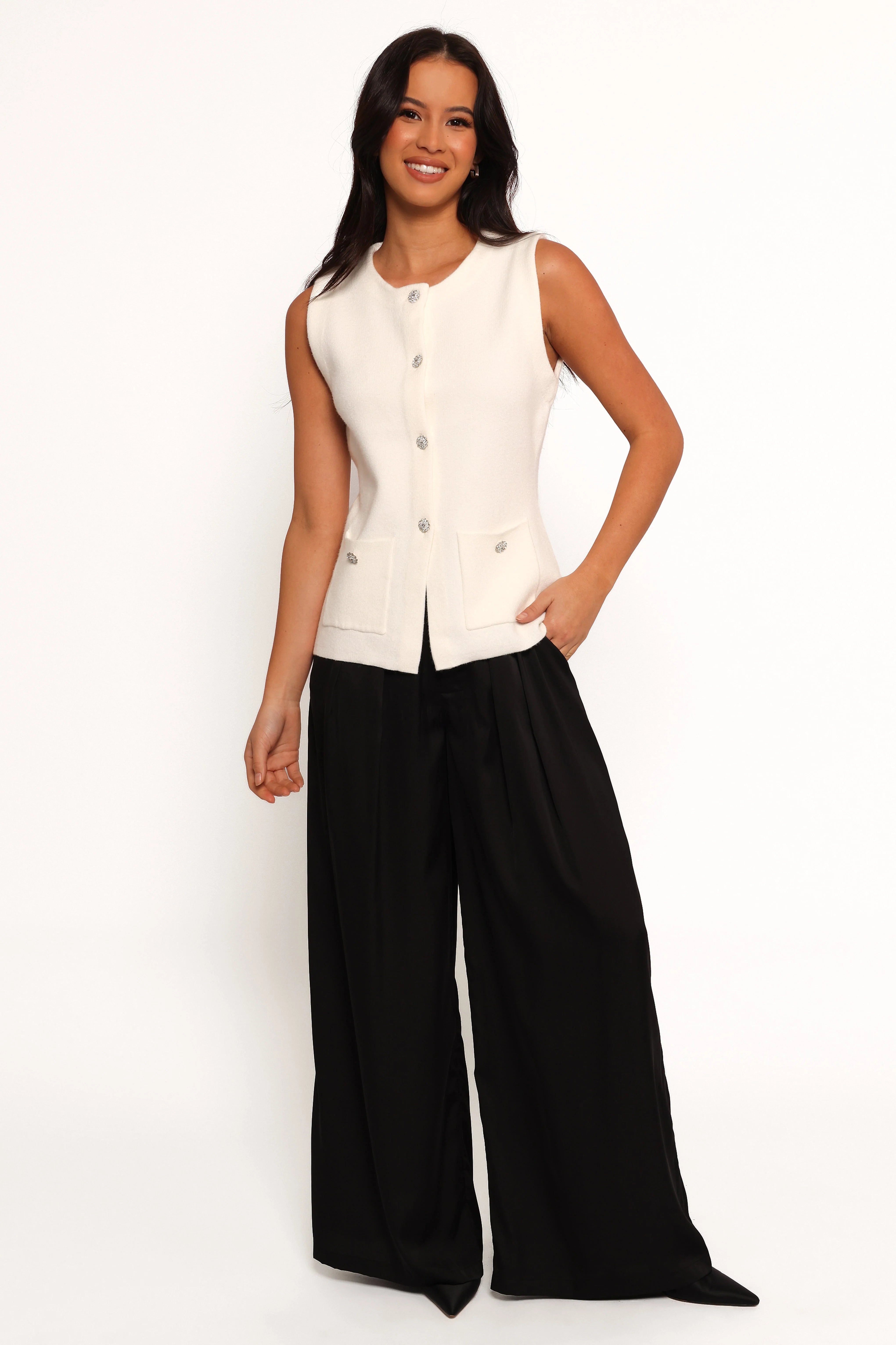DETAILS Imagine stepping out in a piece that's both effortlessly chic and undeniably cozy. Our vest style knit top is your new wardrobe essential that brings a playful twist to any outfit.