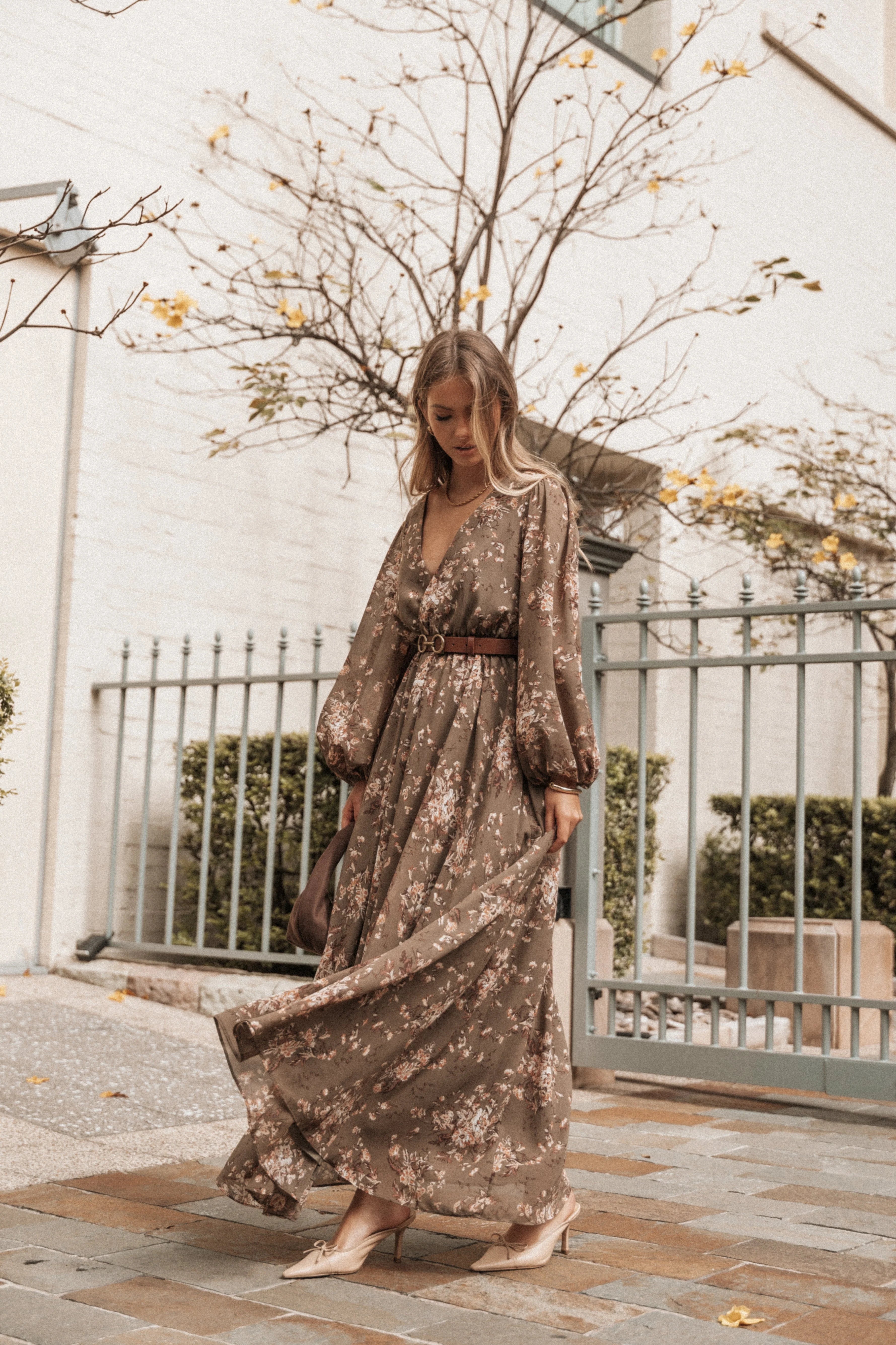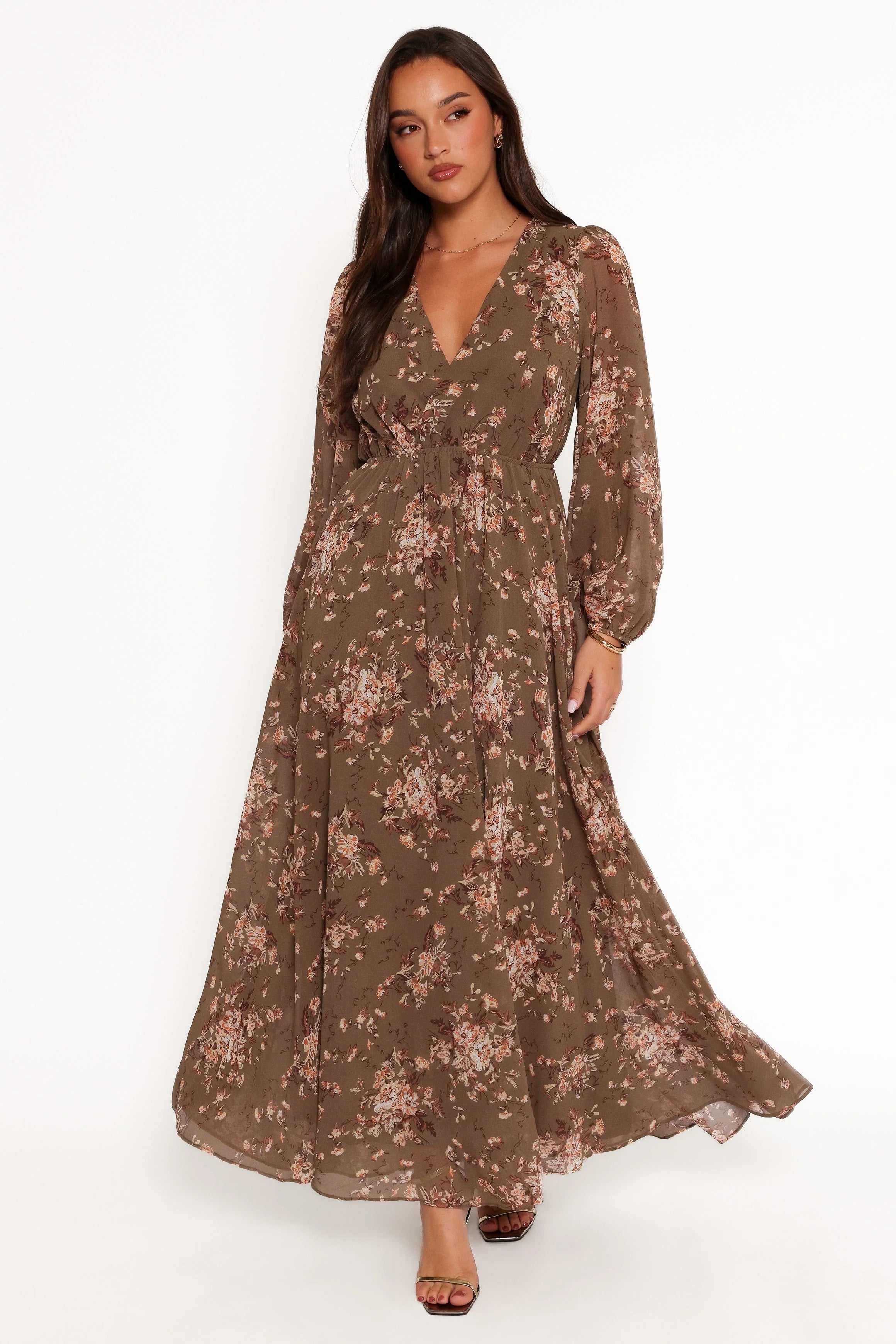 DETAILS Step into a fairytale with the enchanting Anisa Maxi Dress in Olive Floral! This lovely piece, with its maxi length and a-line skirt design, captures the essence of elegance with a vivacious twist. The v overlay neckline, neatly secured with a hook and eye clasp, adds a hint of allure, while the long sheer sleeves with elasticised cuffs offer a dreamy, ethereal touch.