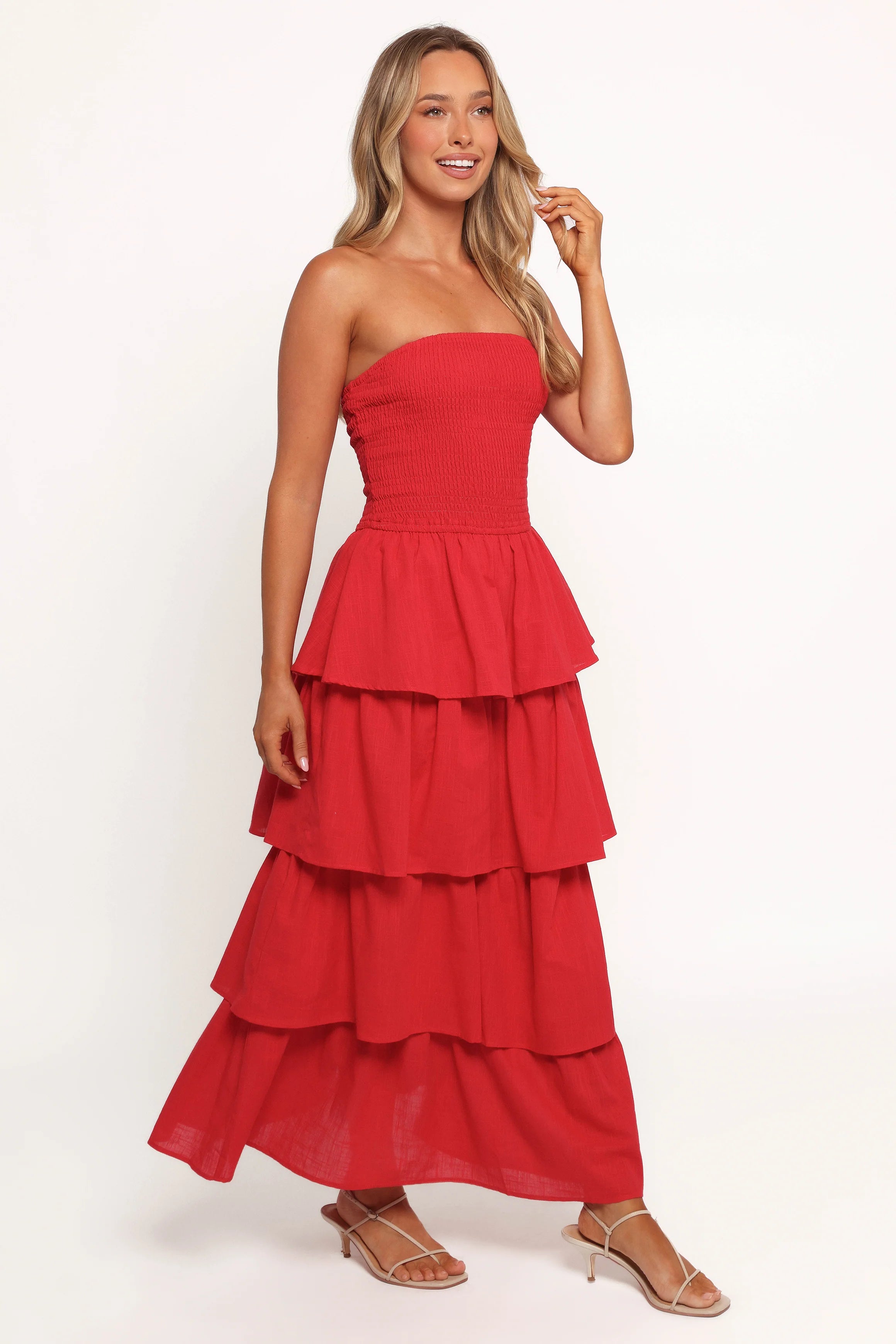 DETAILS Turn heads and make a statement in the Arcadia Maxi Strapless Dress Red. Designed with elegance and ease in mind, this dress features a flowing maxi length and a straight neckline that's as timeless as it is chic.