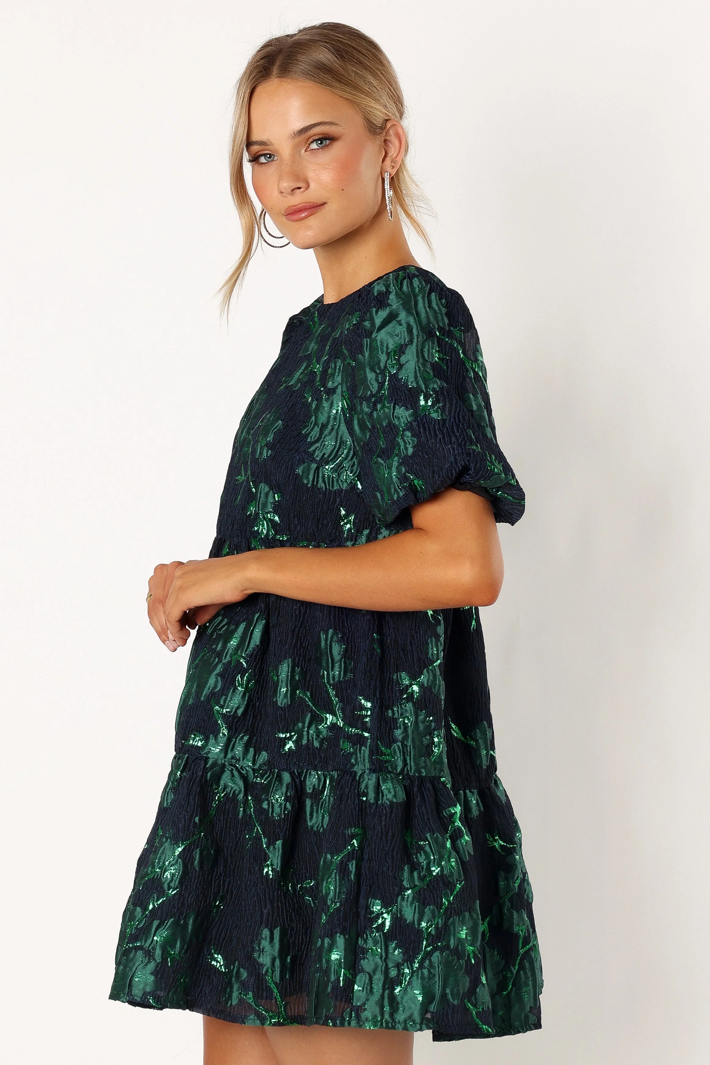 DETAILS The Arwen Mini Dress - Navy is the perfect addition to your wardrobe for any occasion. This dress features a trendy above-knee length, making it versatile and easy to style. The round neckline with clasp adds a touch of sophistication, while the slip-on design allows for maximum comfort.