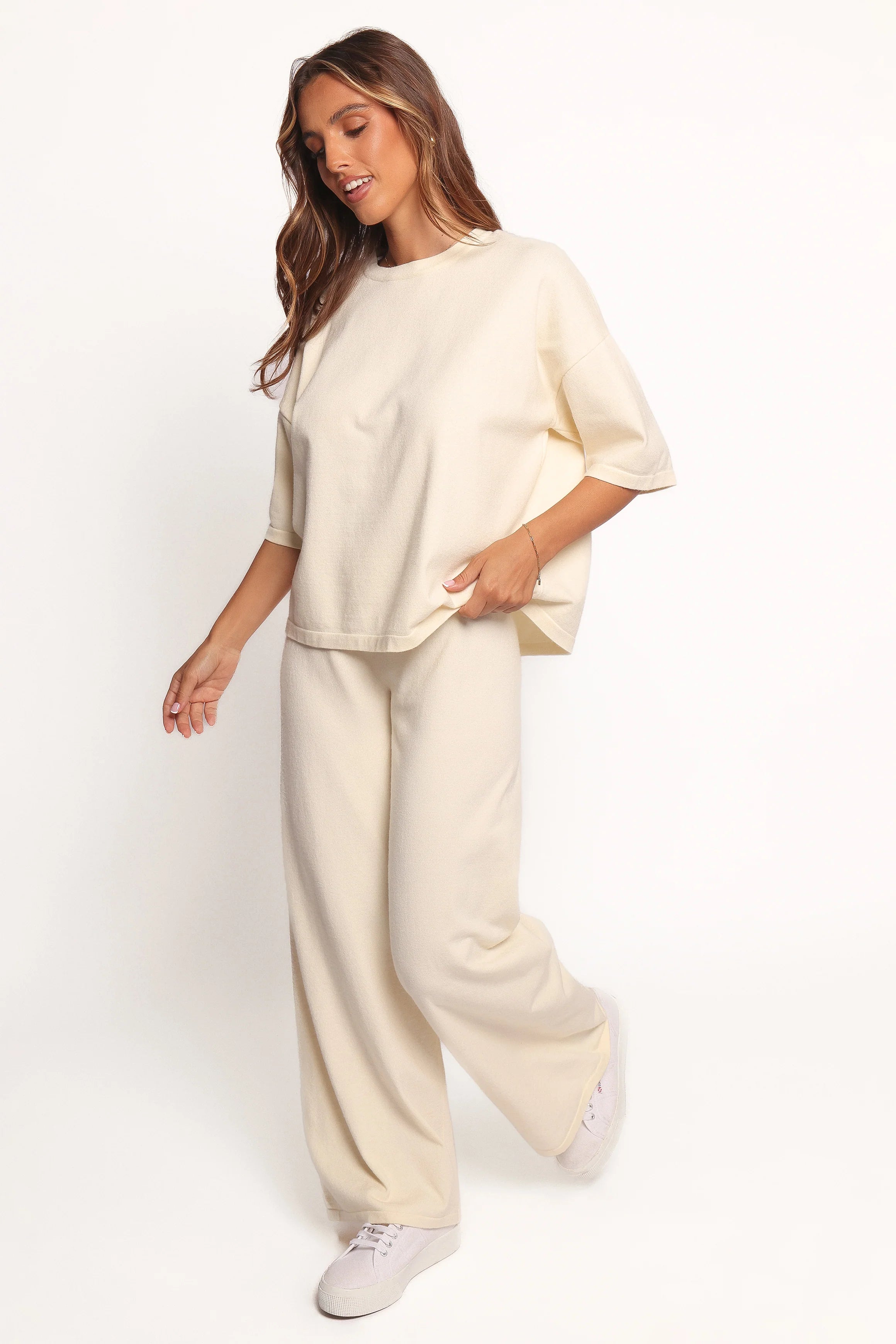 DETAILS Elevate your loungewear game with the effortlessly chic Ash Knitted Pants in White. Designed with a high-waisted silhouette and a straight leg cut, these pants are the perfect blend of comfort and modern sophistication.