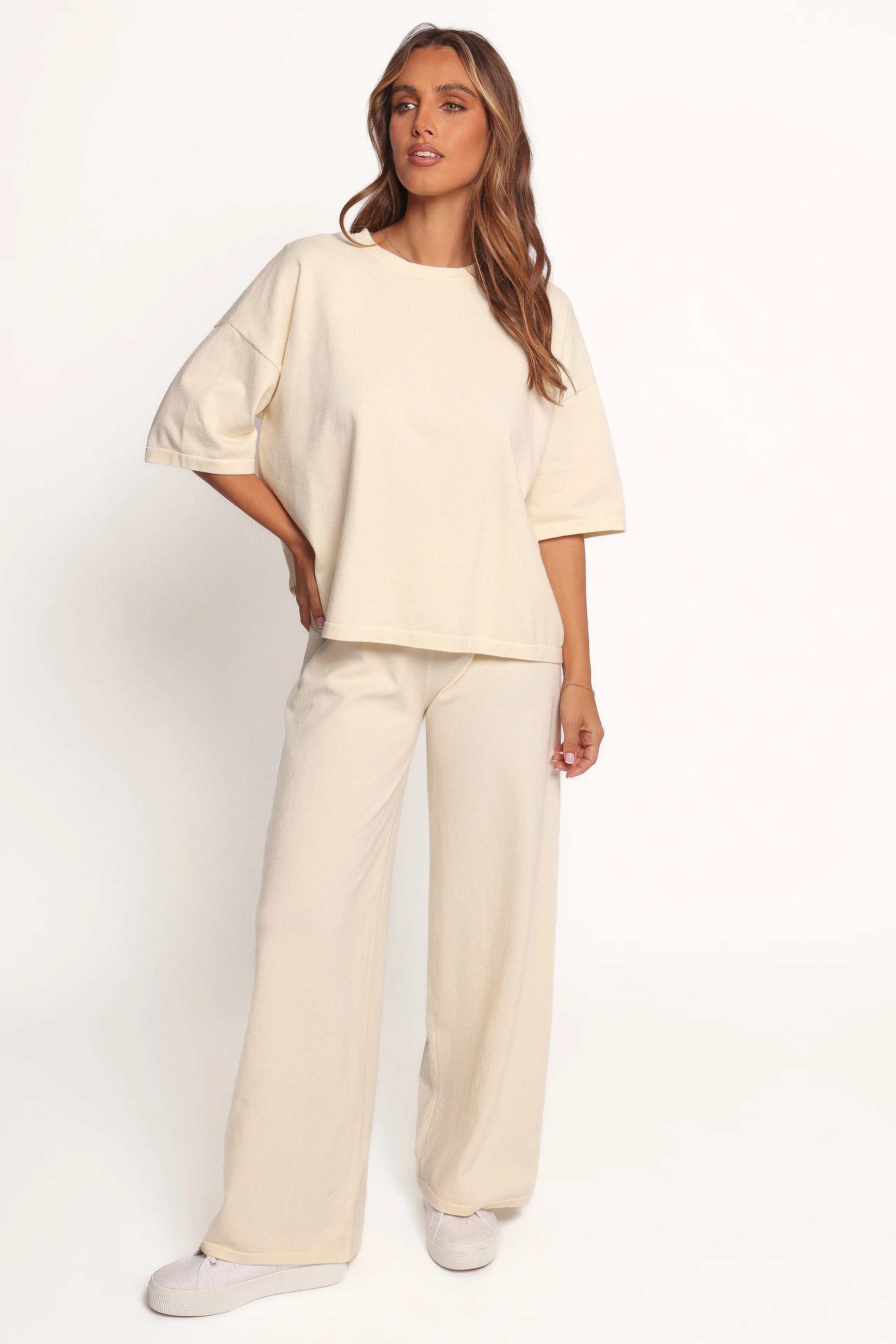 DETAILS Experience effortless style with the Ash Knitted T-Shirt in White. Designed for both comfort and versatility, this wardrobe essential features a classic round neckline and chic short sleeves for a timeless silhouette.
