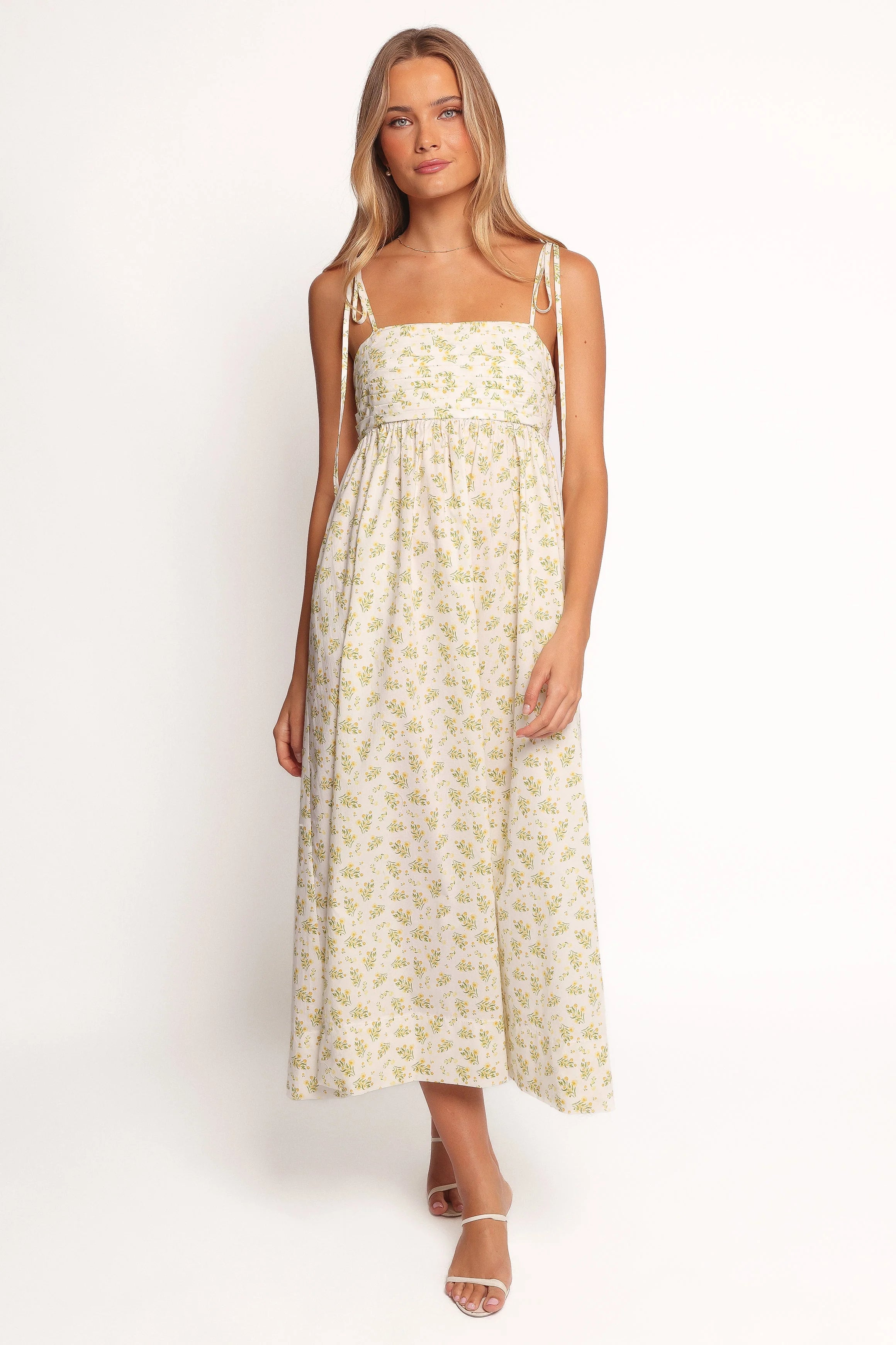 DETAILS Step into sunshine and elegance with the Ashtyn Maxi Dress in Yellow Floral. Crafted for those breezy days that turn into unforgettable chill nights, this dress features a flowing maxi length and an empire waistline that flatters effortlessly.