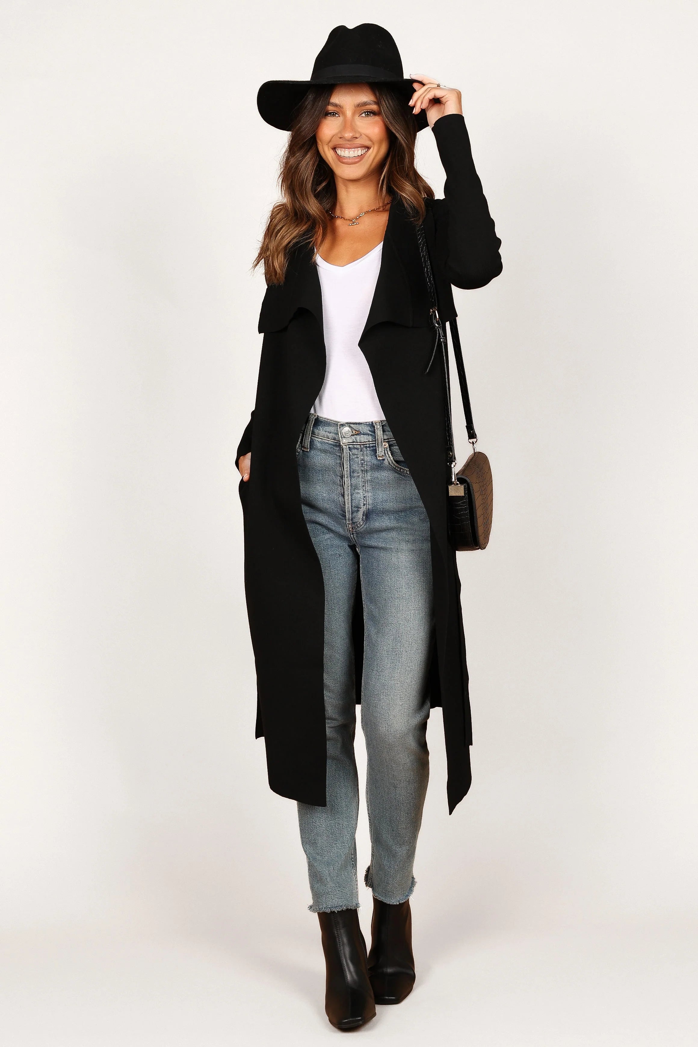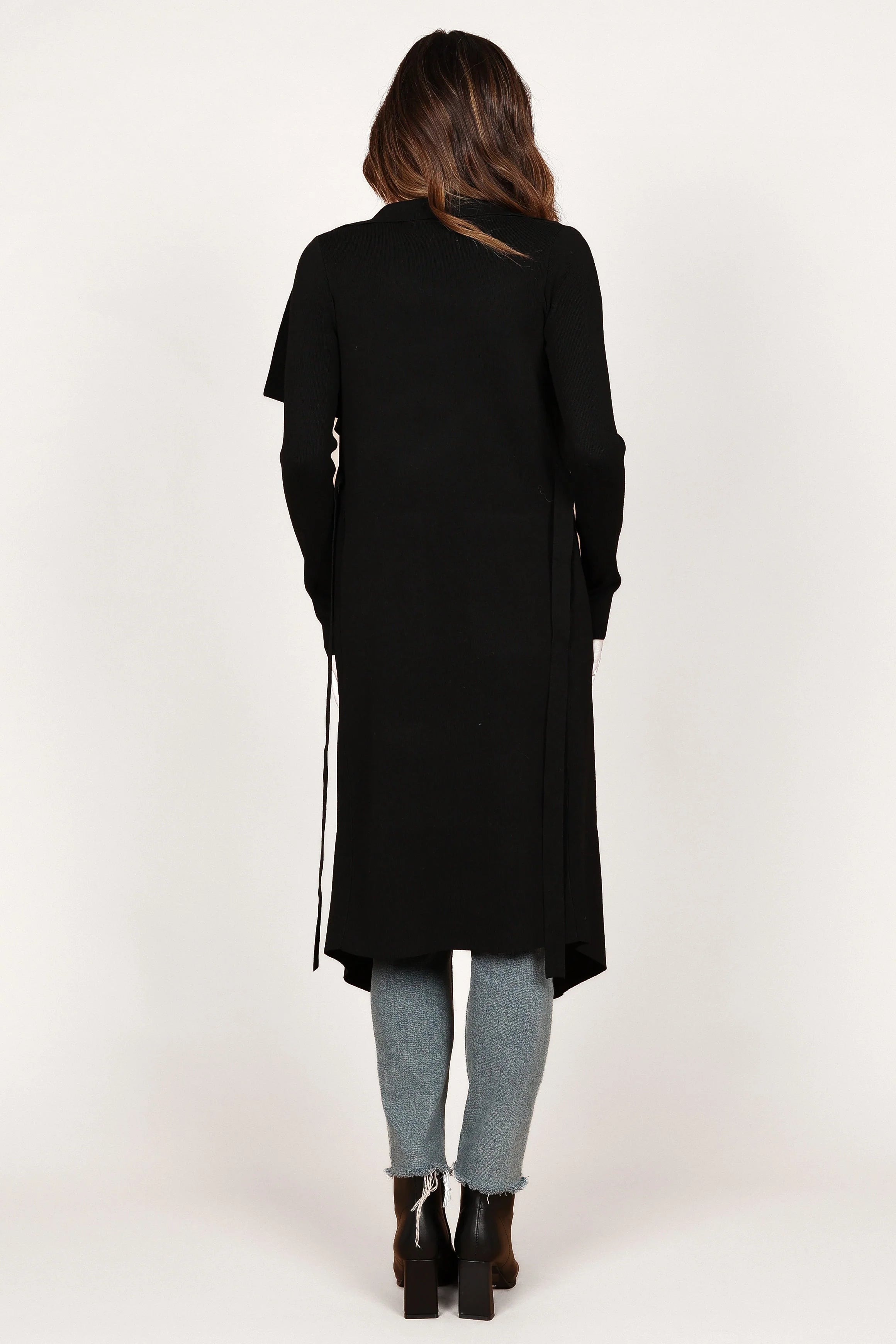 DETAILS Feel effortlessly chic when you slip into this open front cardigan! The longline style brings a timeless and elegant look, while the ribbed knit fabric gives it a wonderfully soft feel. With its long sleeves, attached waist tie, side pockets, and side hem split – you'll be stylishly comfortable all day.