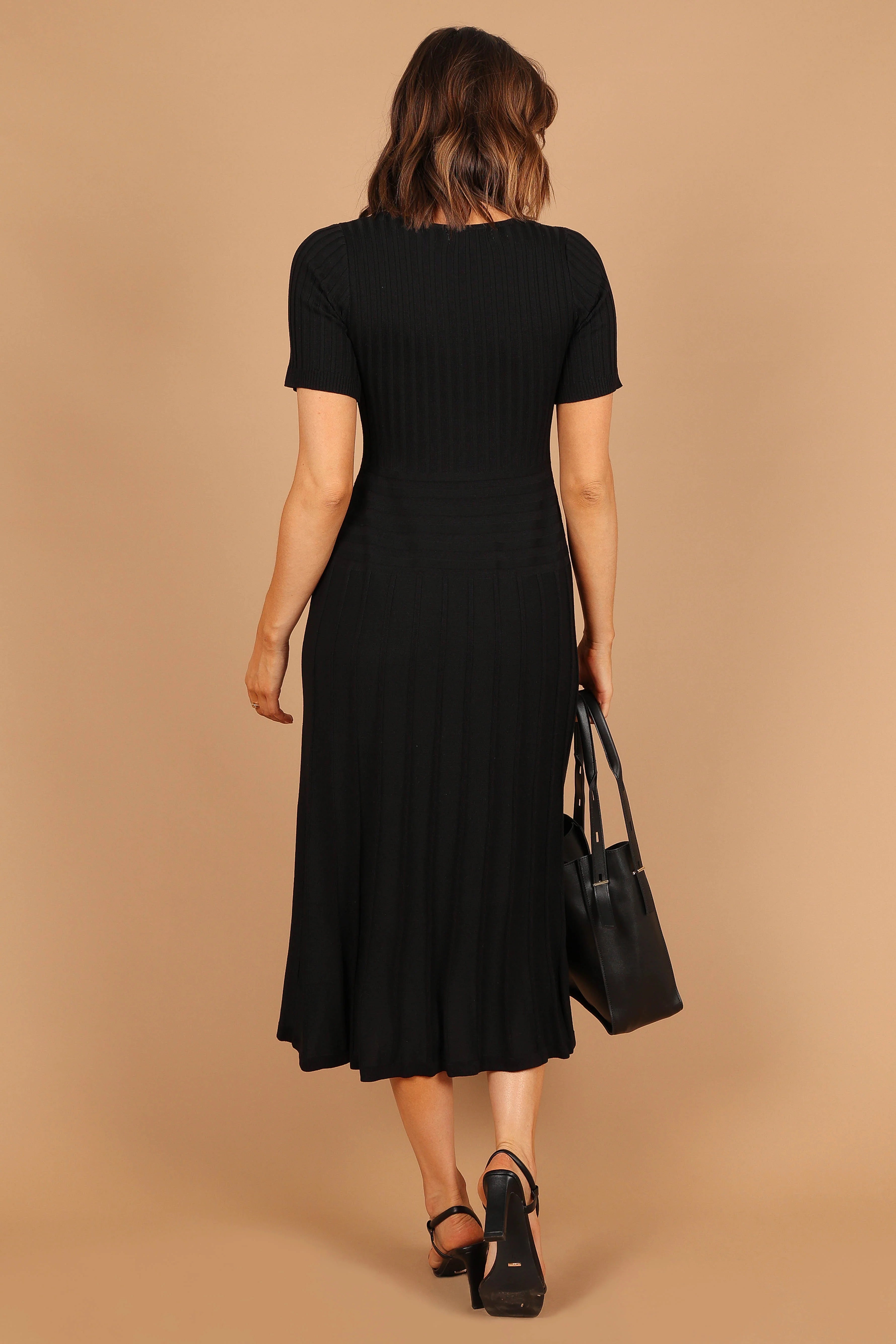 DETAILS Say hello to the perfect piece for any occasion! This midi length dress is so comfortable and flattering, you'll never want to take it off. Its round neckline, short sleeves, and stretch ribbed knit fabric make it a must-have in your wardrobe.