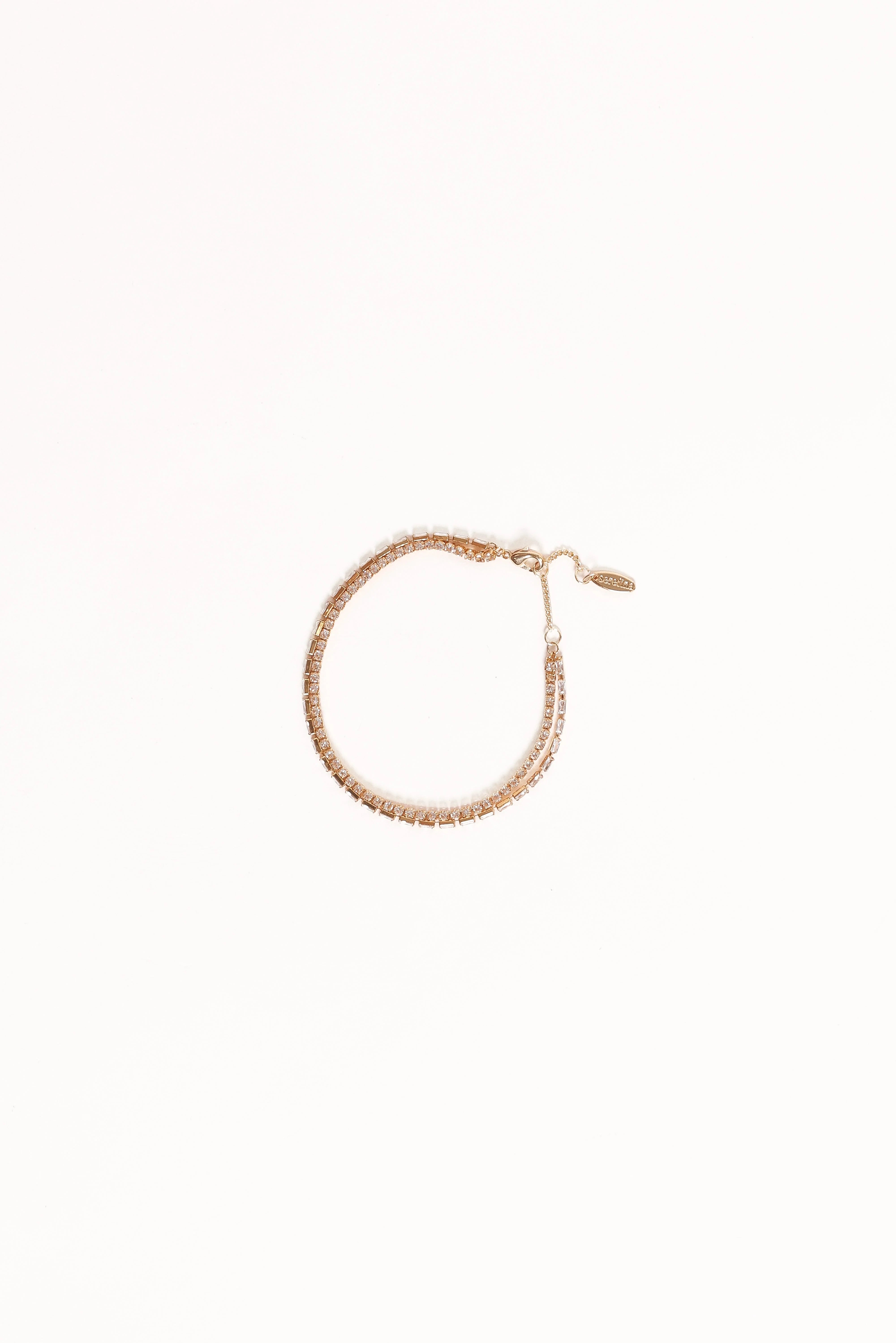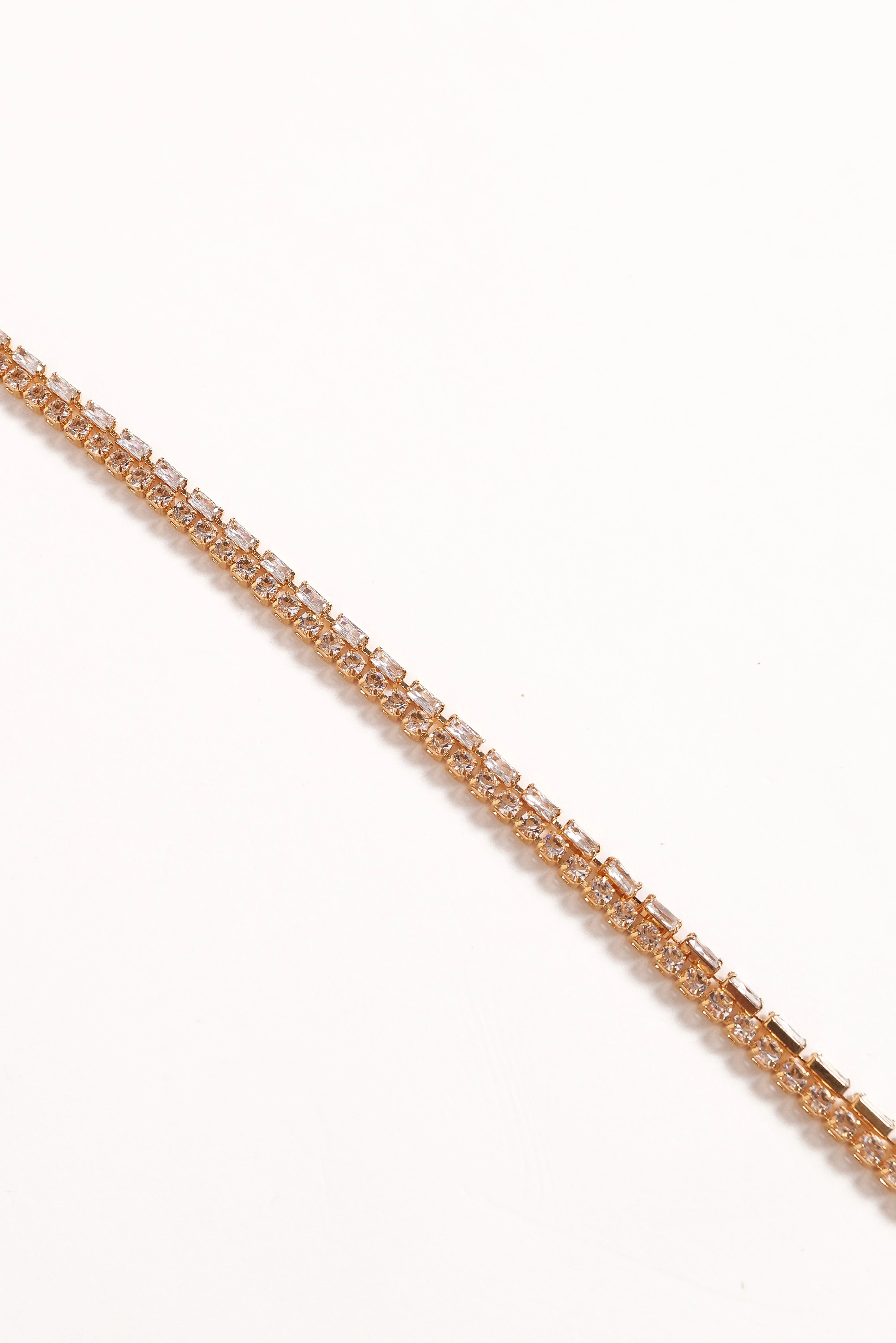 | DETAILS This double-layer gold link chain bracelet is designed to catch the light and your eye, featuring a stunning cubic zirconia detail that adds just the right amount of sparkle. Crafted with a gold-plated finish, it promises both durability and style, making it a timeless addition to any outfit.