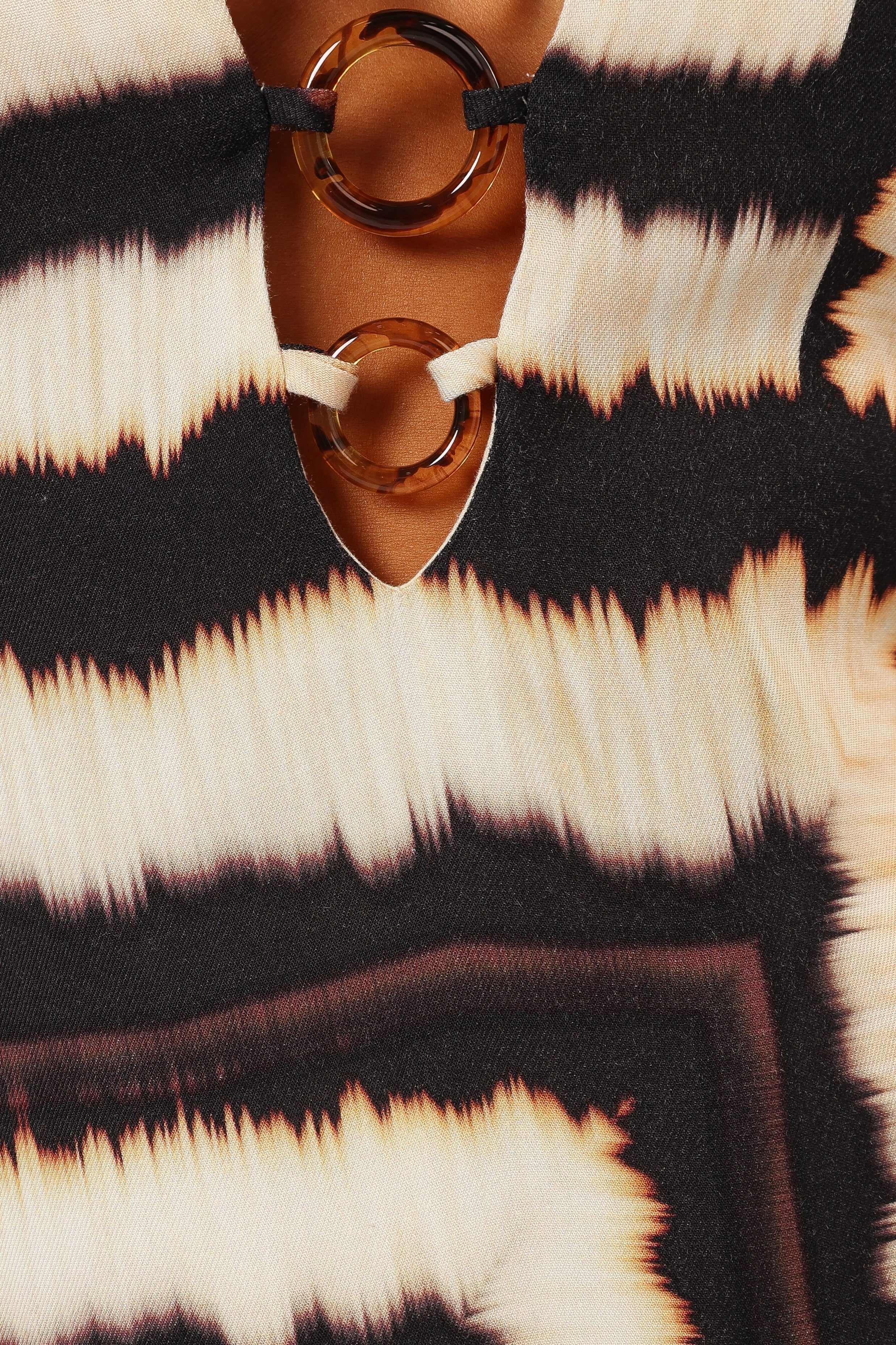 DETAILS This maxi dress is a must-have for any wardrobe. The tortoiseshell ring feature on front makes it stand out. Plus, its v neckline, long sleeves and open back design will make you look like a total dream!