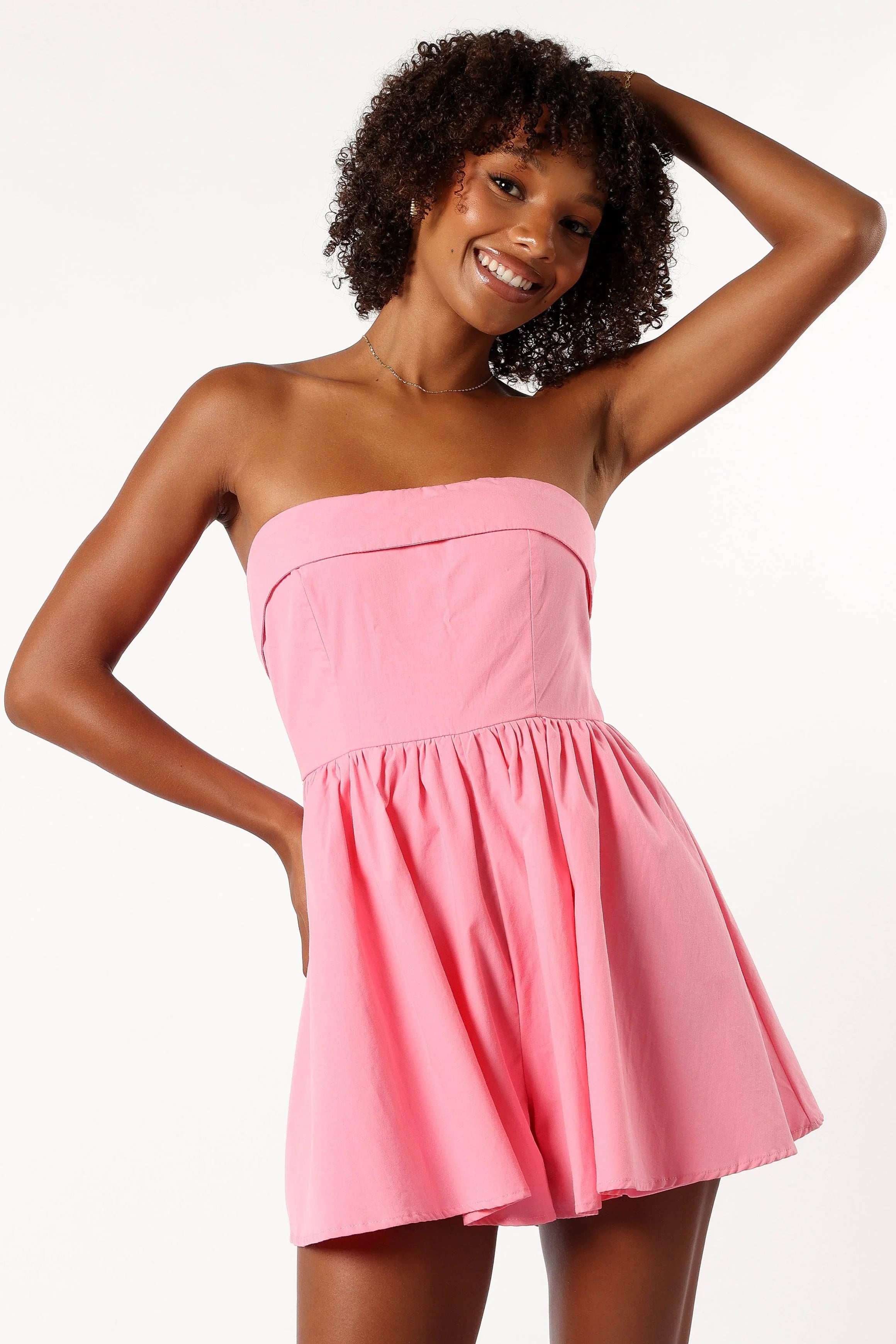 | DETAILS Step into style with our strapless dresses featuring exquisite fold detail and a sleek straight neckline. Offering both beauty and comfort with an invisible back zip and a shirred back panel for the perfect fit.