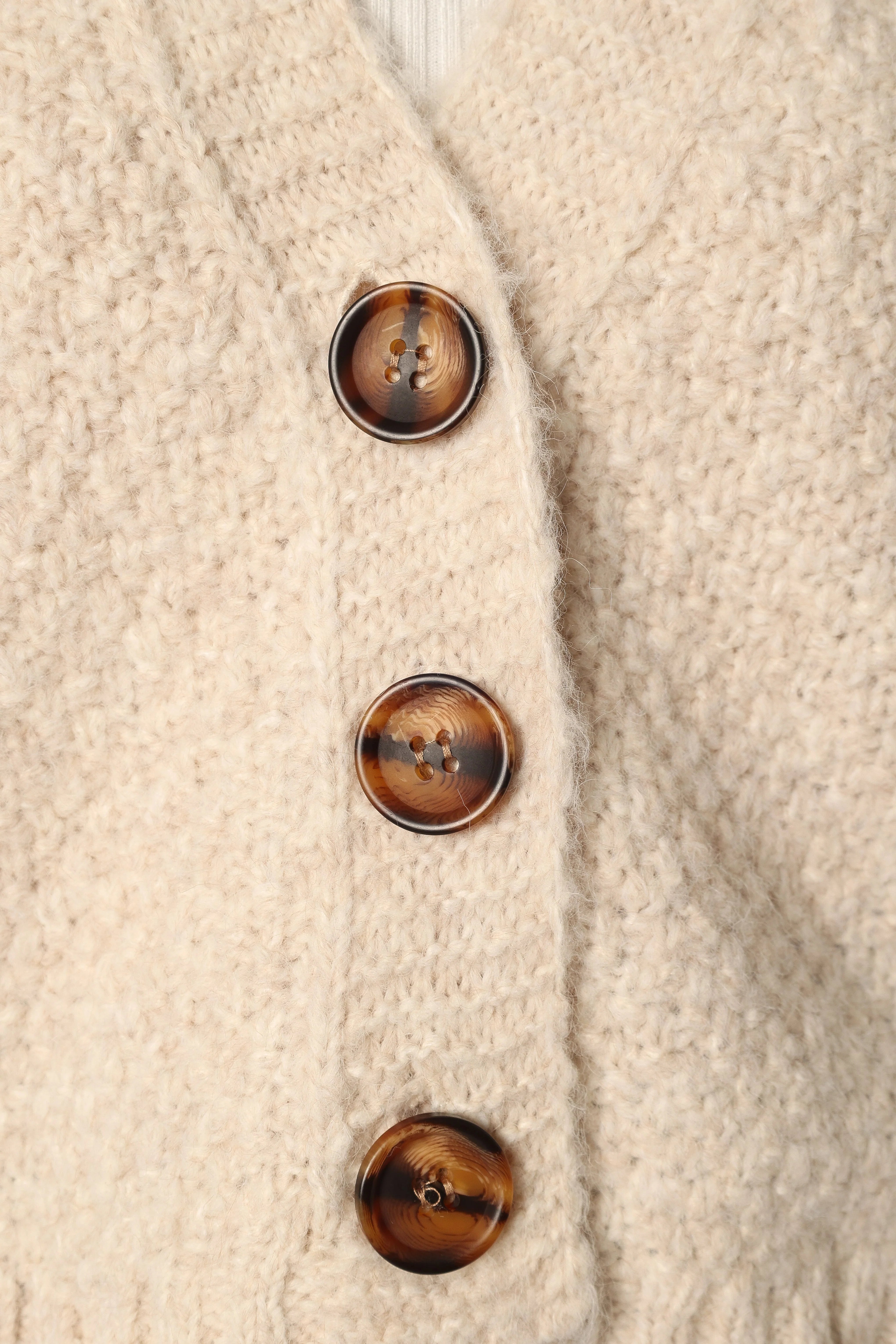 DETAILS Meet the Blakey Cardigan - a blend of style and comfort. With its cropped length and trendy V neckline, it is charming and playful. The long sleeves with ribbed cuffs give it a cozy feel, while the functional buttons down the front add an extra touch of charm.