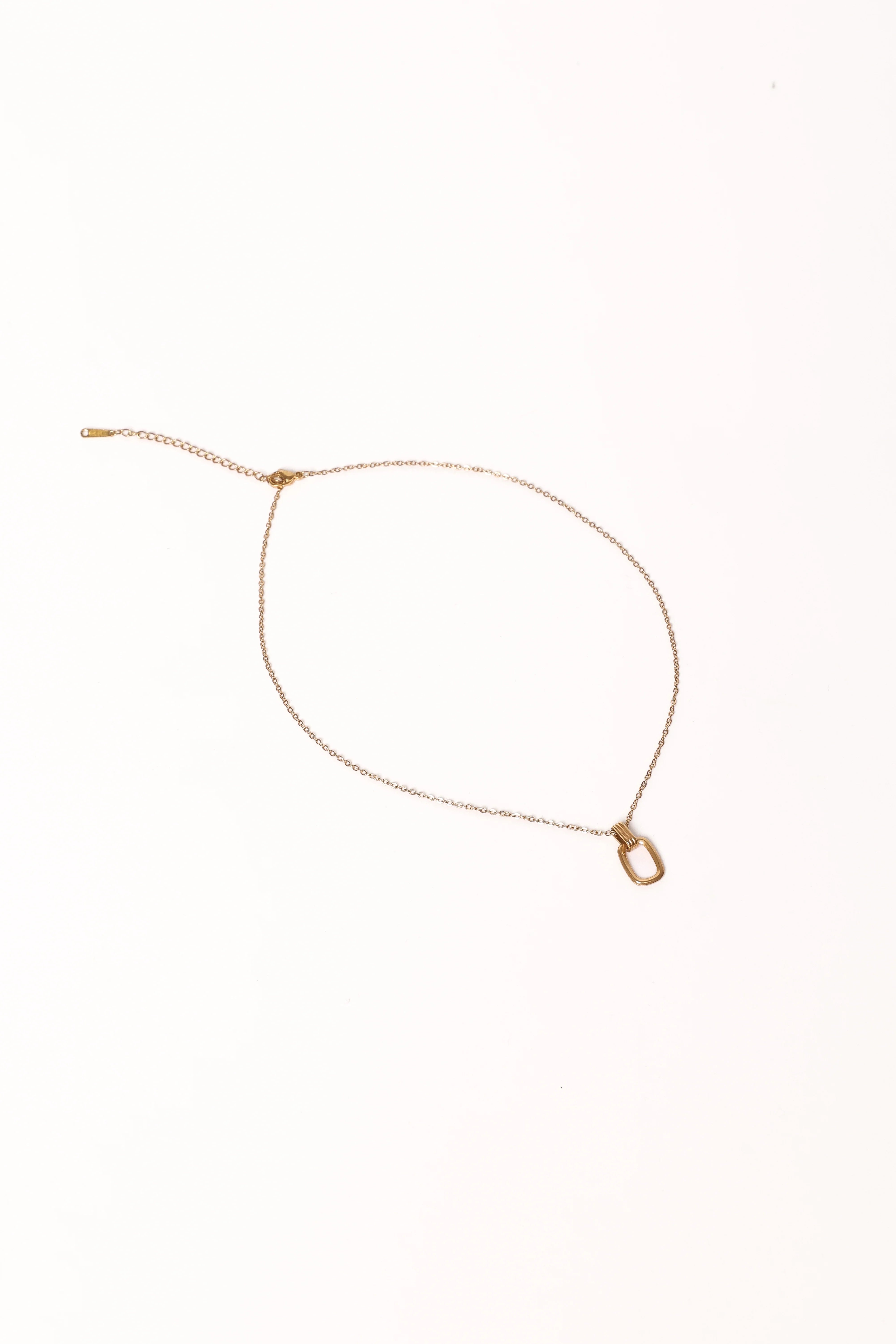 DETAILS Elevate your jewelry game with the Cagnes Necklace in Gold, a modern classic designed to turn heads. Featuring a bold gold link chain paired with a sleek square pendant, this piece strikes the perfect balance between trendy and timeless.