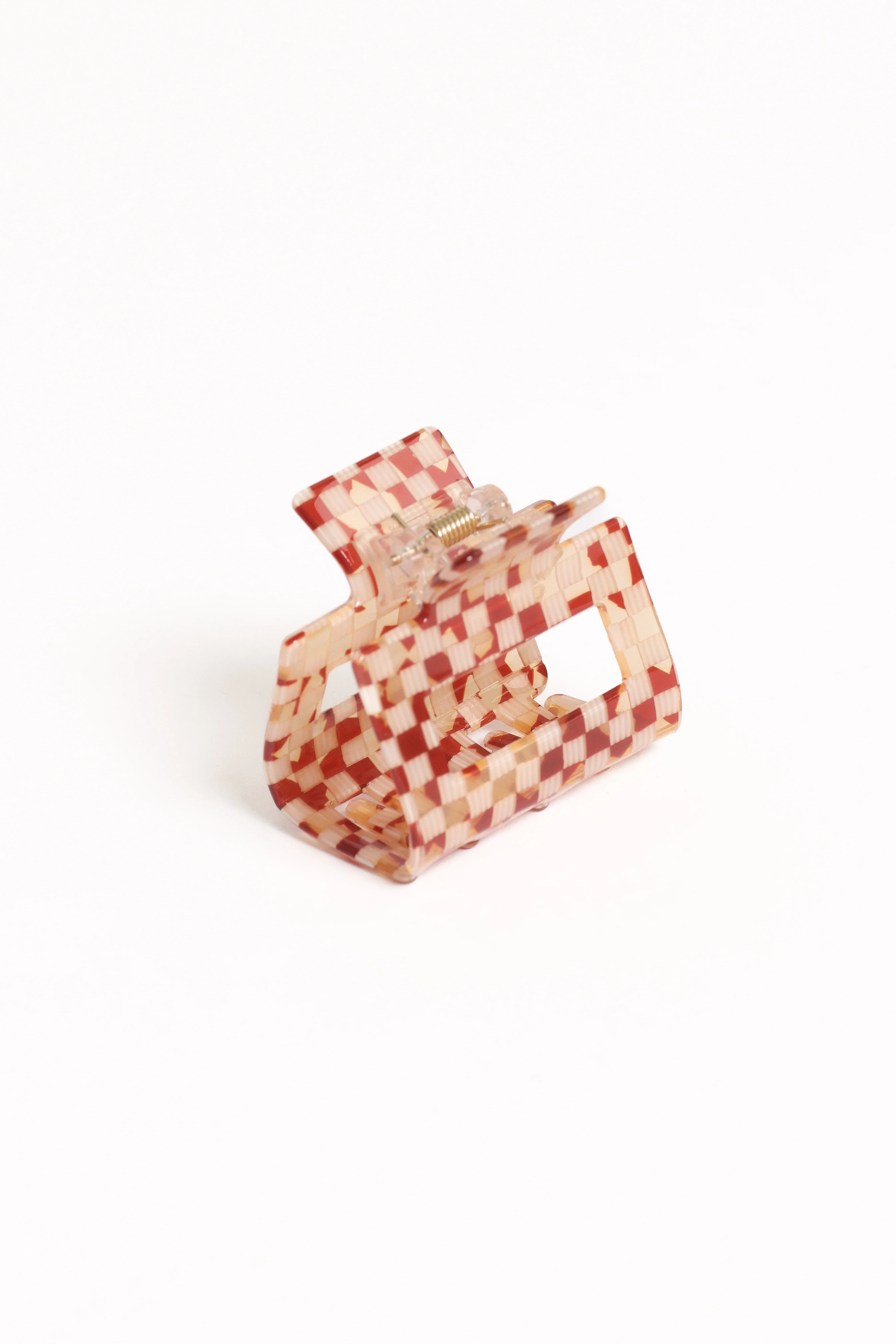 | DETAILS Add a touch of effortless style to your look with the Capri Hair Clip in Tan Check. Its claw-style design makes it perfect for securing your hair in place while adding an on-trend vibe to any outfit.