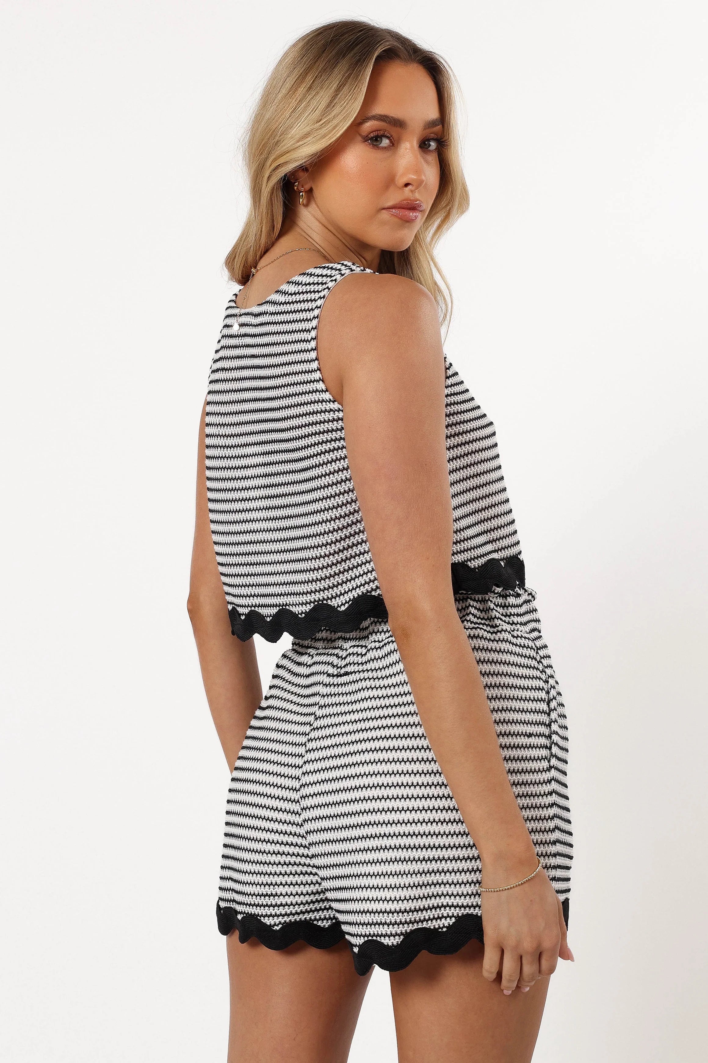 DETAILS This playful and fashion-forward shorts set is perfect for any occasion. Featuring a cropped length top with a scoop neckline and sleeveless design. The shorts are designed with your comfort in mind, featuring an elasticised waistband for a perfect fit and functional side pockets that combine practicality with style.