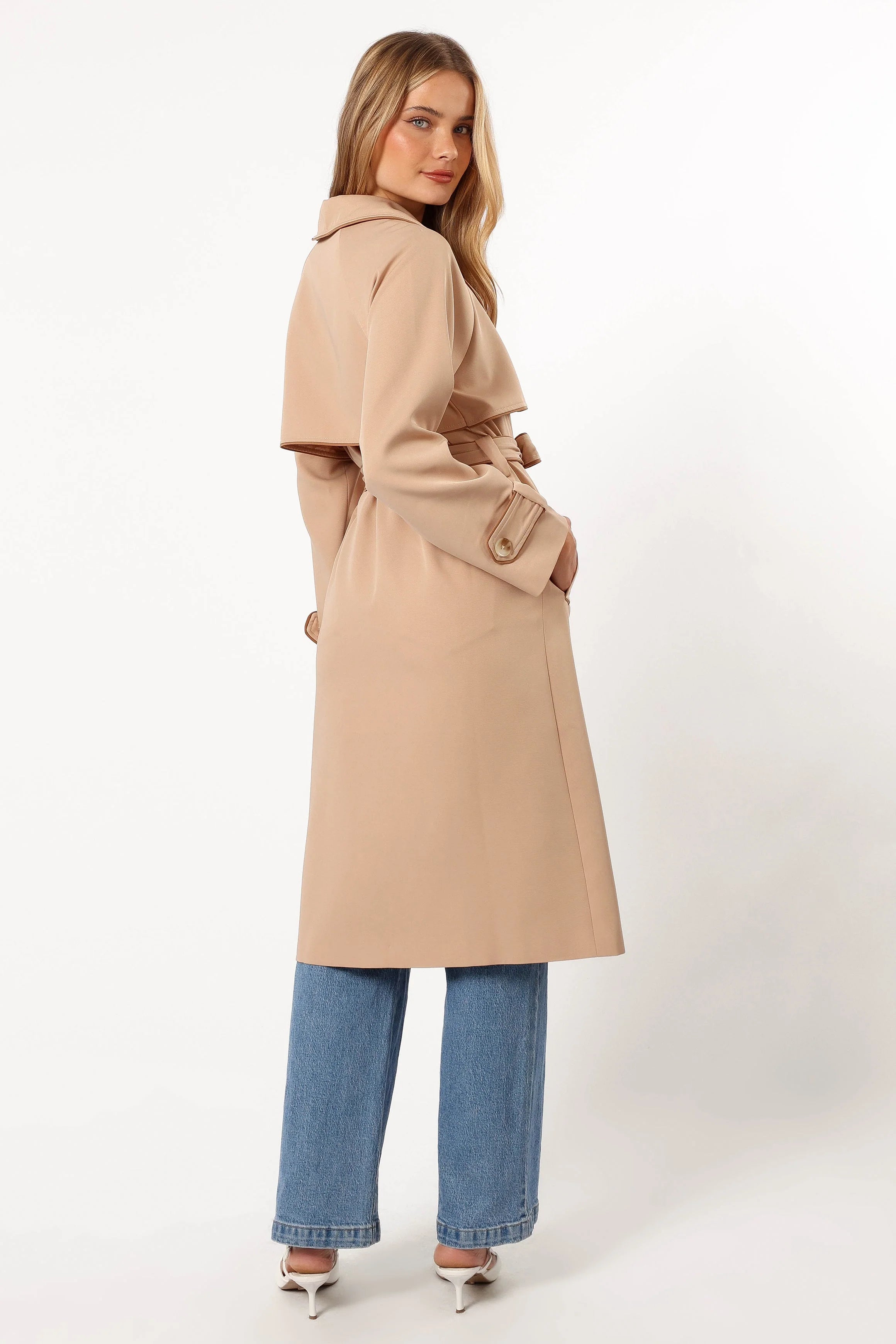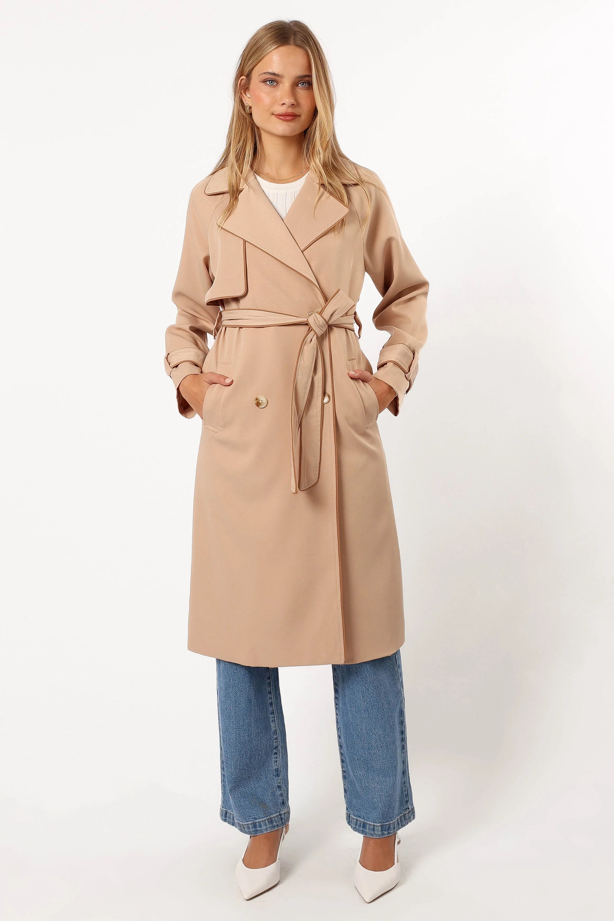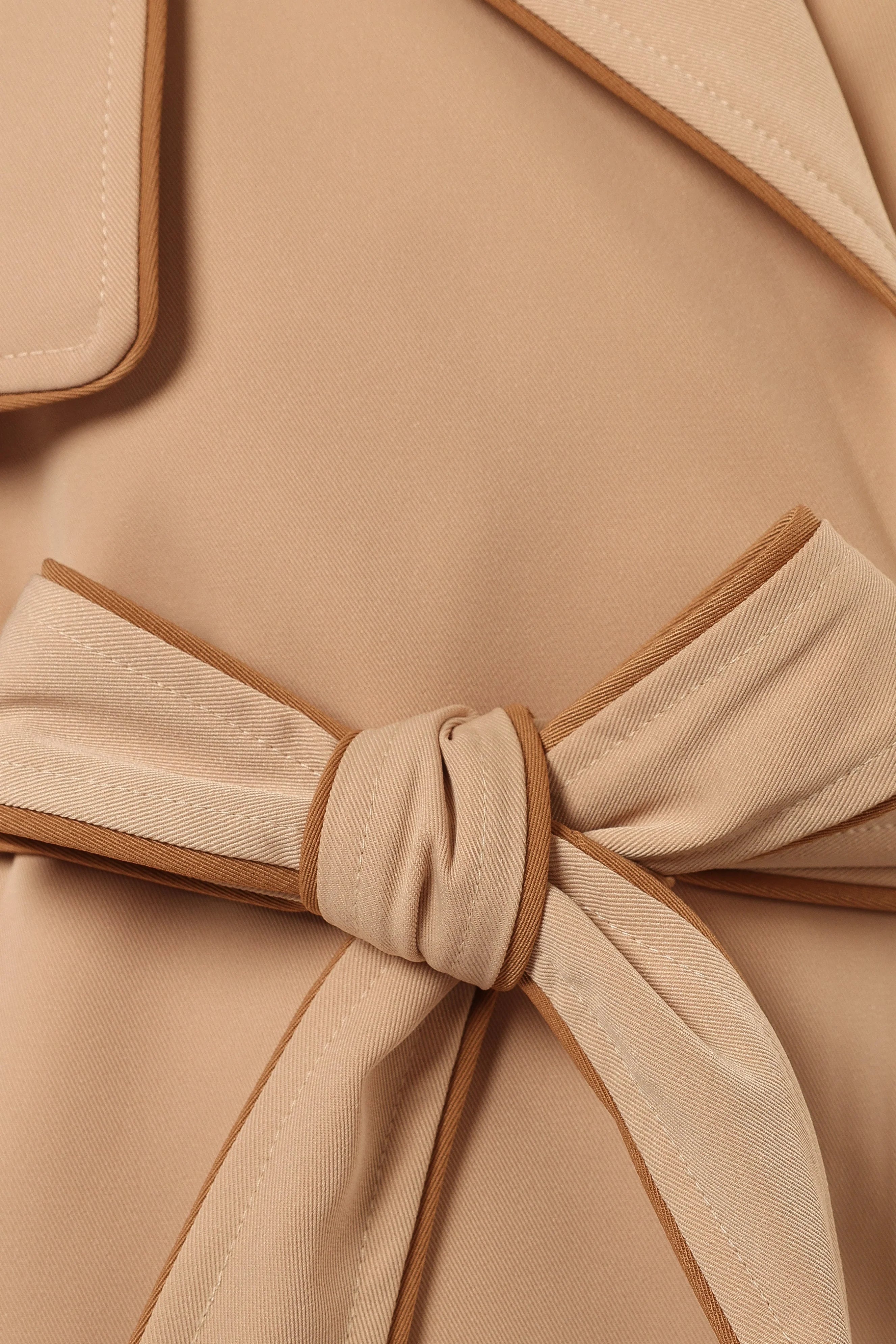 DETAILS This classic style is made with a collared neckline, button down front and double breasted design - all enhanced with detachable waist tie for a touch of sophistication. Not to mention the contrast trim feature.