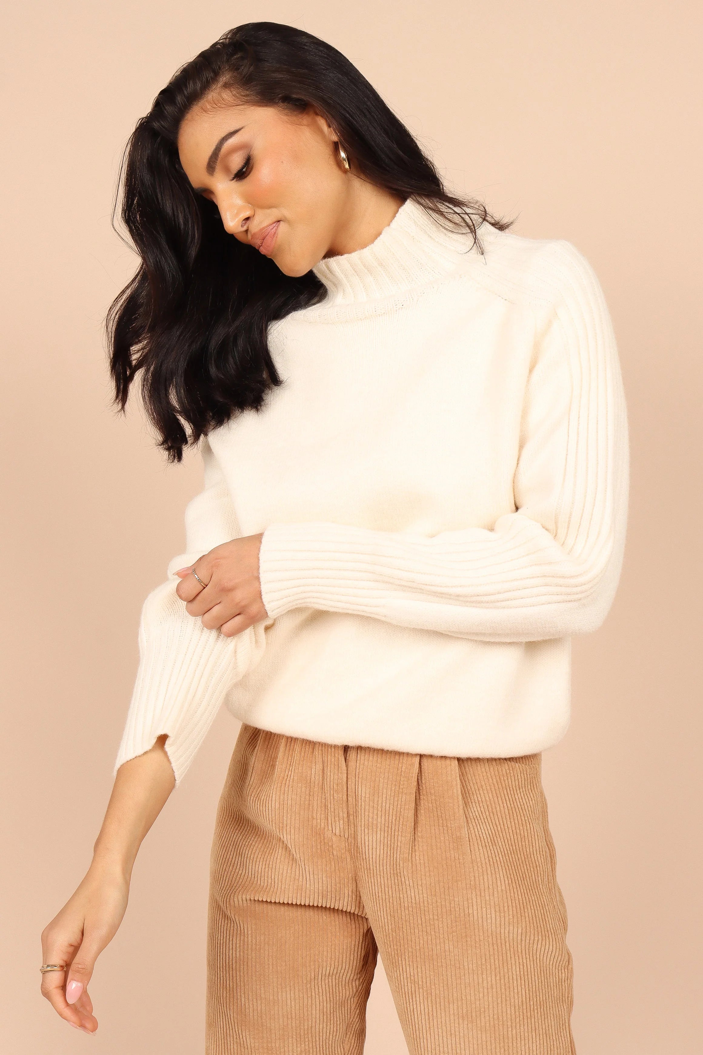 DETAILS Are you ready for the perfect go-to top this season? This mock neck knit top is sure to have heads turning! Its long sleeves and ribbed cuffs ensure that your arms stay cozy and stylish, while its ribbing detailing adds flair and texture.