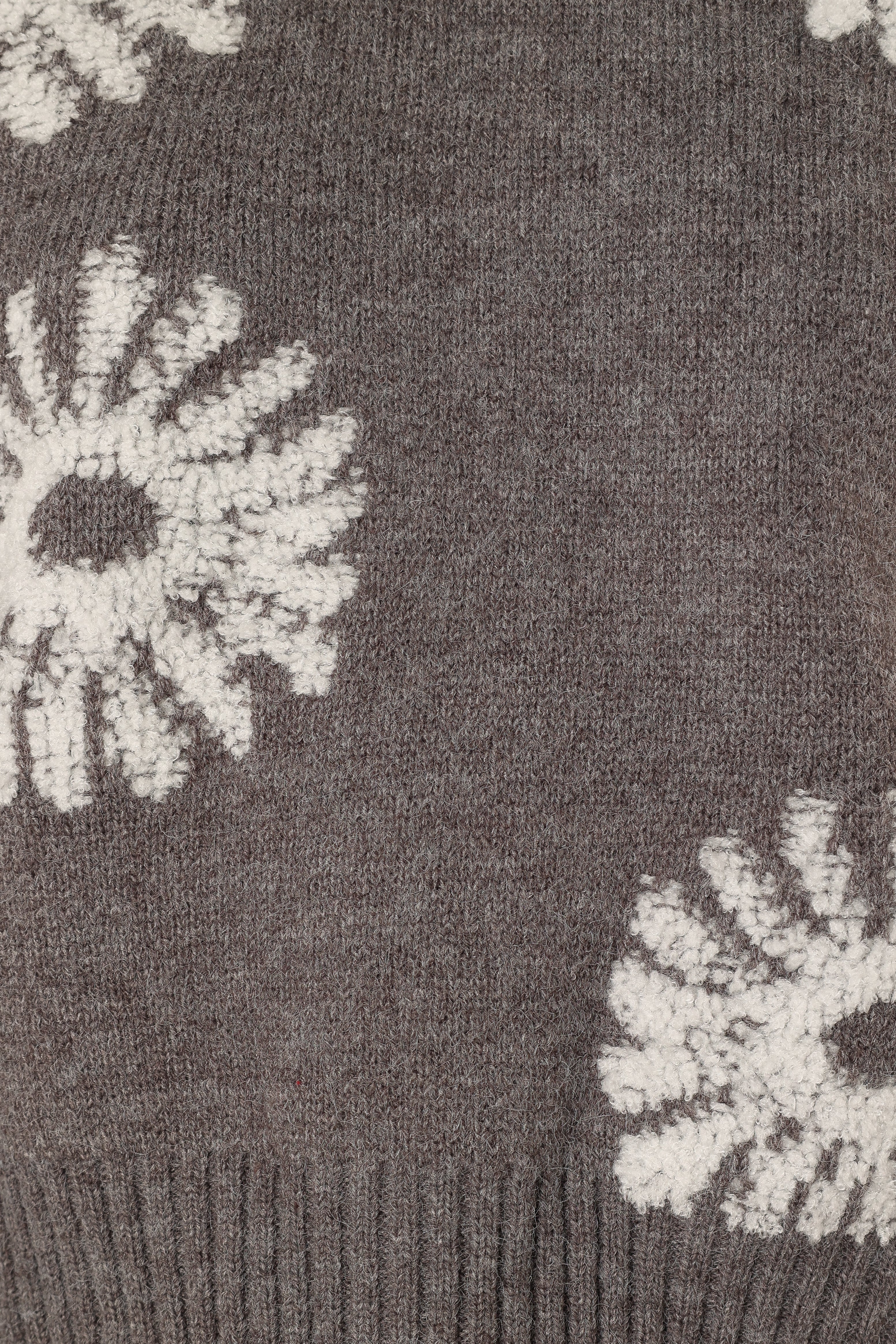 DETAILS Looking for something cute and comfy? This Grey knit sweater is the answer. With its round neckline, long sleeves with ribbed cuffs, and abstract pattern design, you'll get both fashion and comfort!