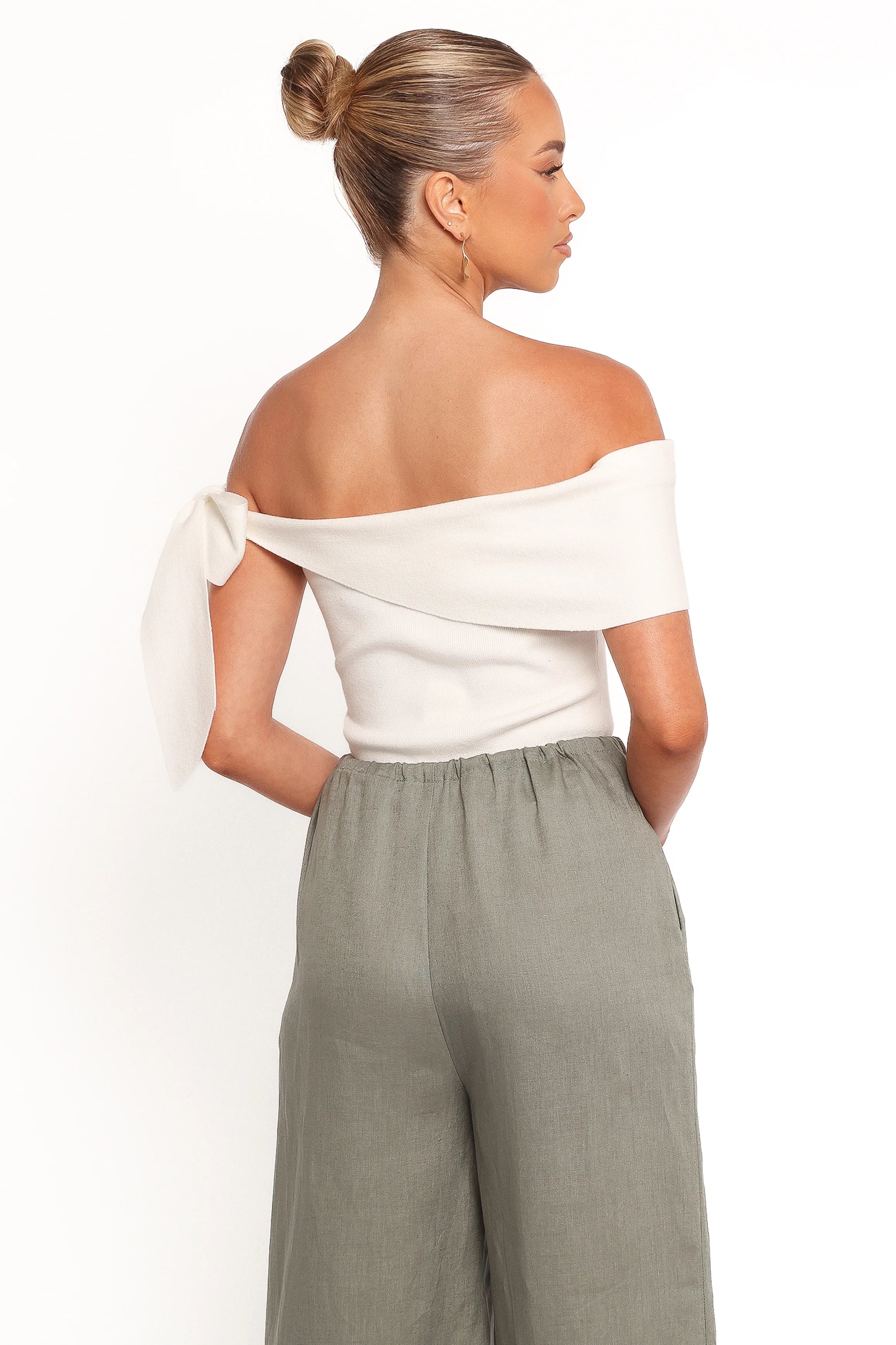 DETAILS Elevate your wardrobe with the Charama Off Shoulder Knit Top in crisp white, a versatile piece that blends effortless style with modern detailing. The off-shoulder design and straight neckline create a relaxed yet chic silhouette, perfect for everything from brunch outings to evening plans.