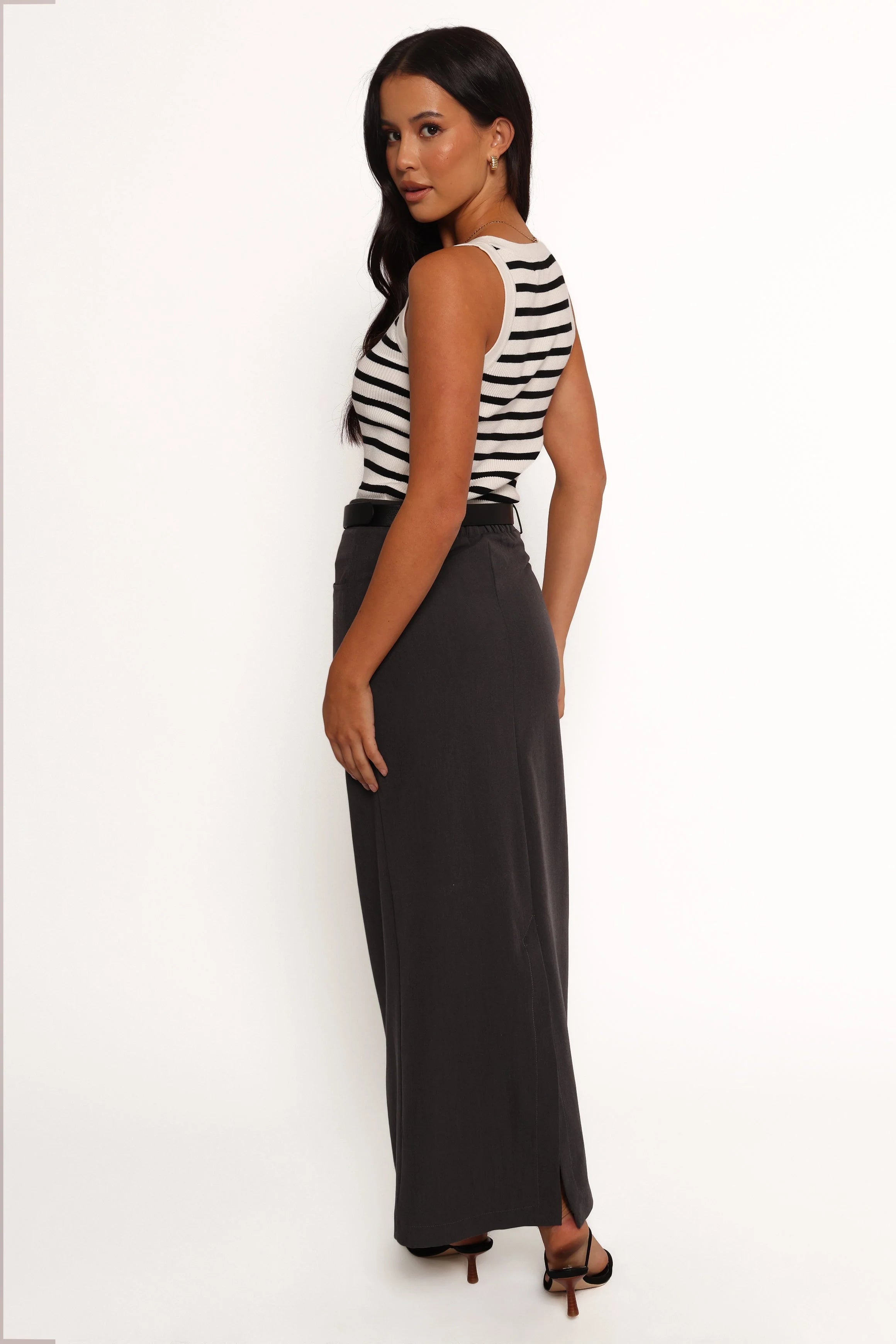 | DETAILS Tailored with a maxi length, the Chicca Maxi Skirt offers an elegant silhouette that flatters all body types. The front zip fly with a hook and eye clasp ensures a secure and sleek fit, while the back elasticised waistband adapts to your shape, offering comfort without compromising on style.