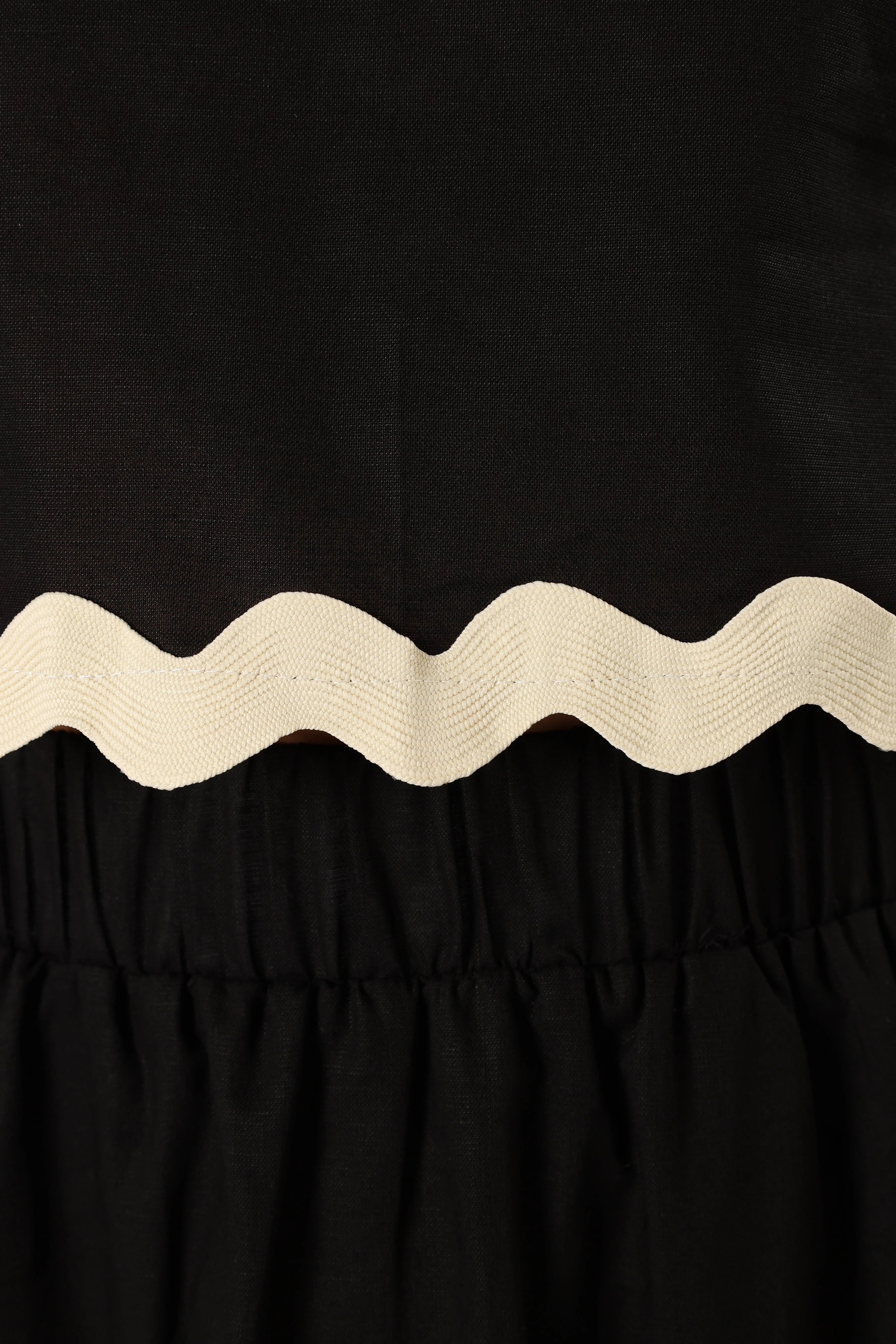 | DETAILS Make a statement with our vibrant Chrissy Two Piece Set in Black Cream. This classic combo features a chic cropped top with a demure round neckline and back neck opening. The set's elegant midi length skirt sits high on the waist and gently flares into a classic A-line silhouette, enhanced by an elasticised waistband for your ultimate comfort