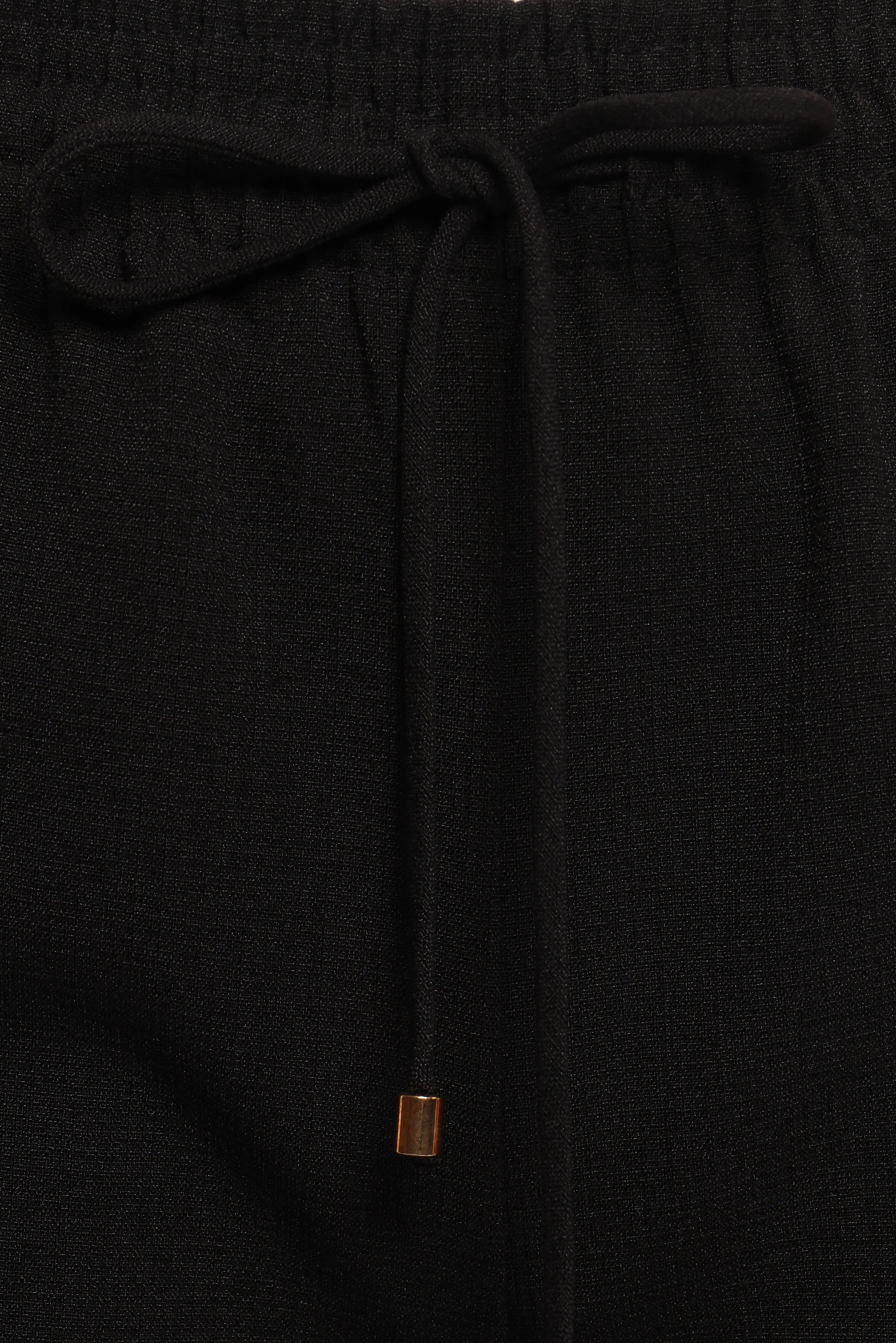 | DETAILS Step into effortless sophistication with the Cinch Wide Leg Crepe Pant in Black, a must-have addition to any modern wardrobe. Designed for both comfort and style, these pants feature an elasticised waist and a chic drawstring tie adorned with gold bead details, ensuring a perfect fit every time.
