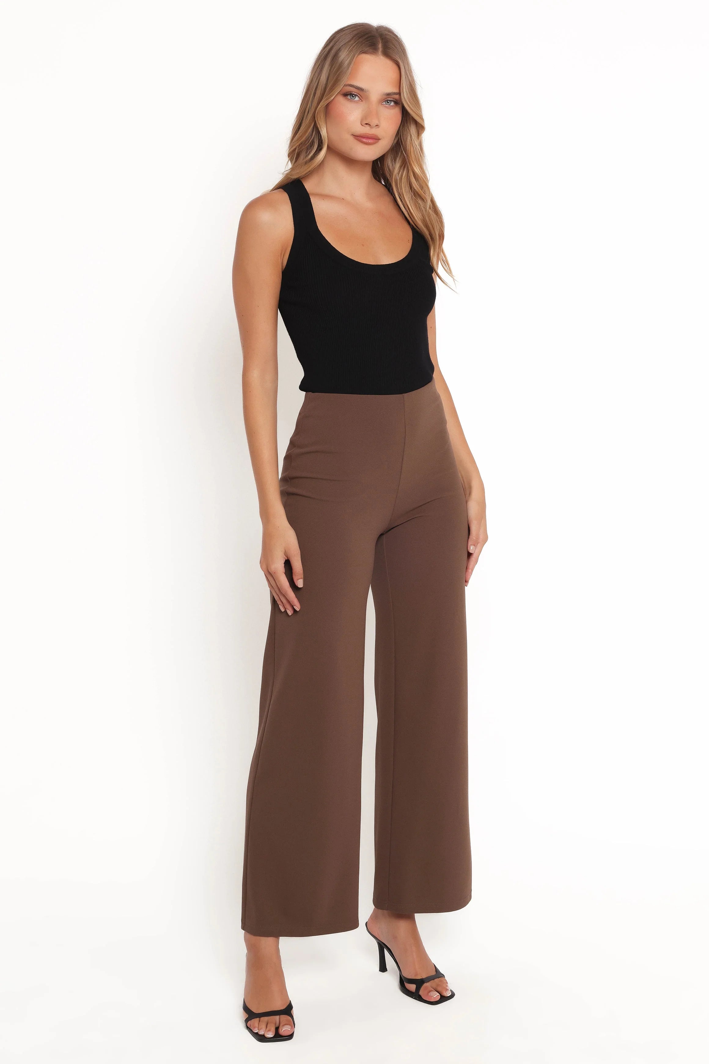 | DETAILS Meet the Colette Pants - Brown, your new go-to for an effortlessly chic look that seamlessly transitions from the office to after-hours. These high-waisted pants boast a sleek, tailored design that flatters all body types, giving you the confidence to own every room you walk into.