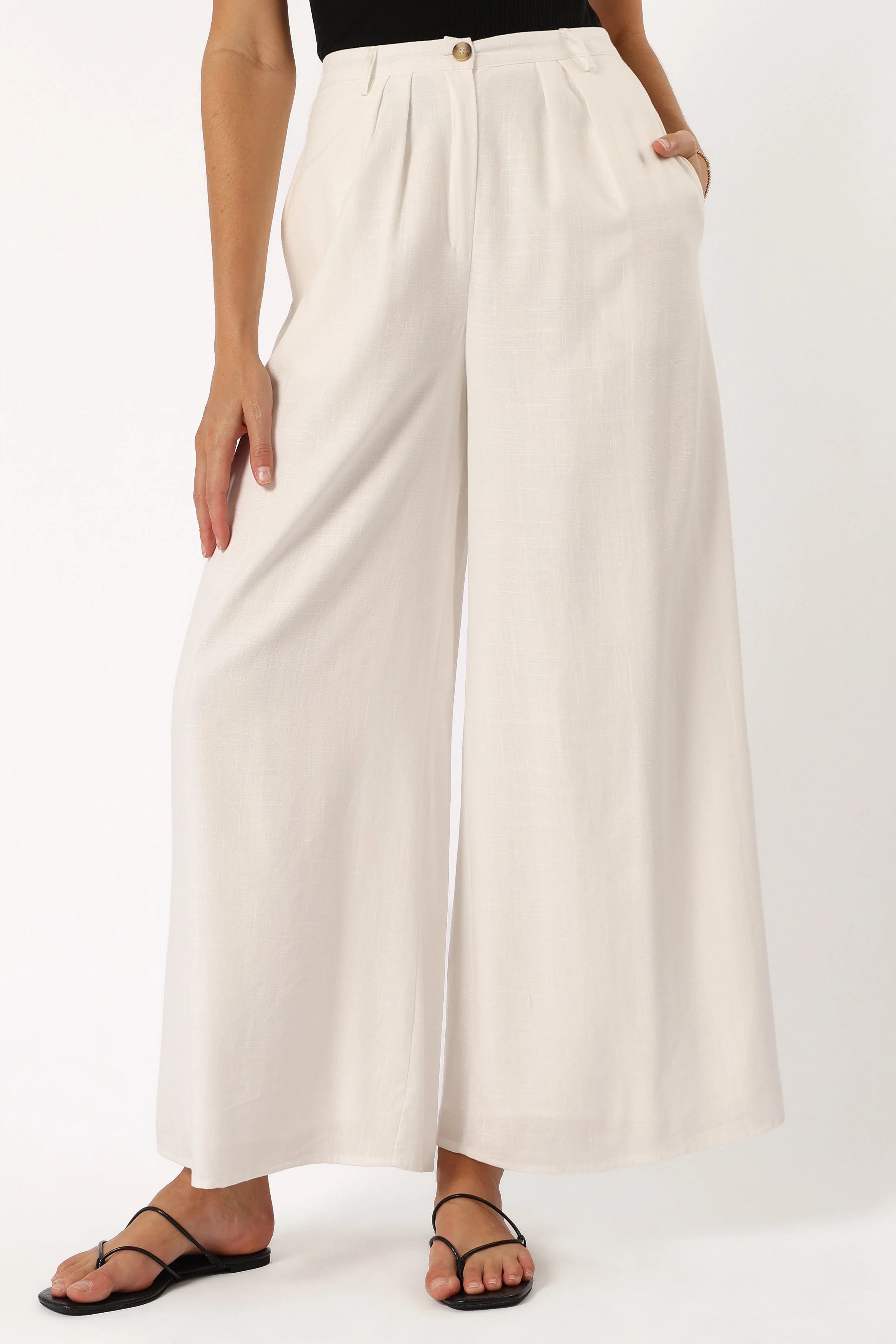 | DETAILS Are you ready to turn heads and show off your style? We've got the perfect pant for you! These wide leg pants are ideal for making a chic statement and will take your wardrobe up a notch. The high waist, front pleating detail, belt loops, and functional pockets add to their stylish appeal.