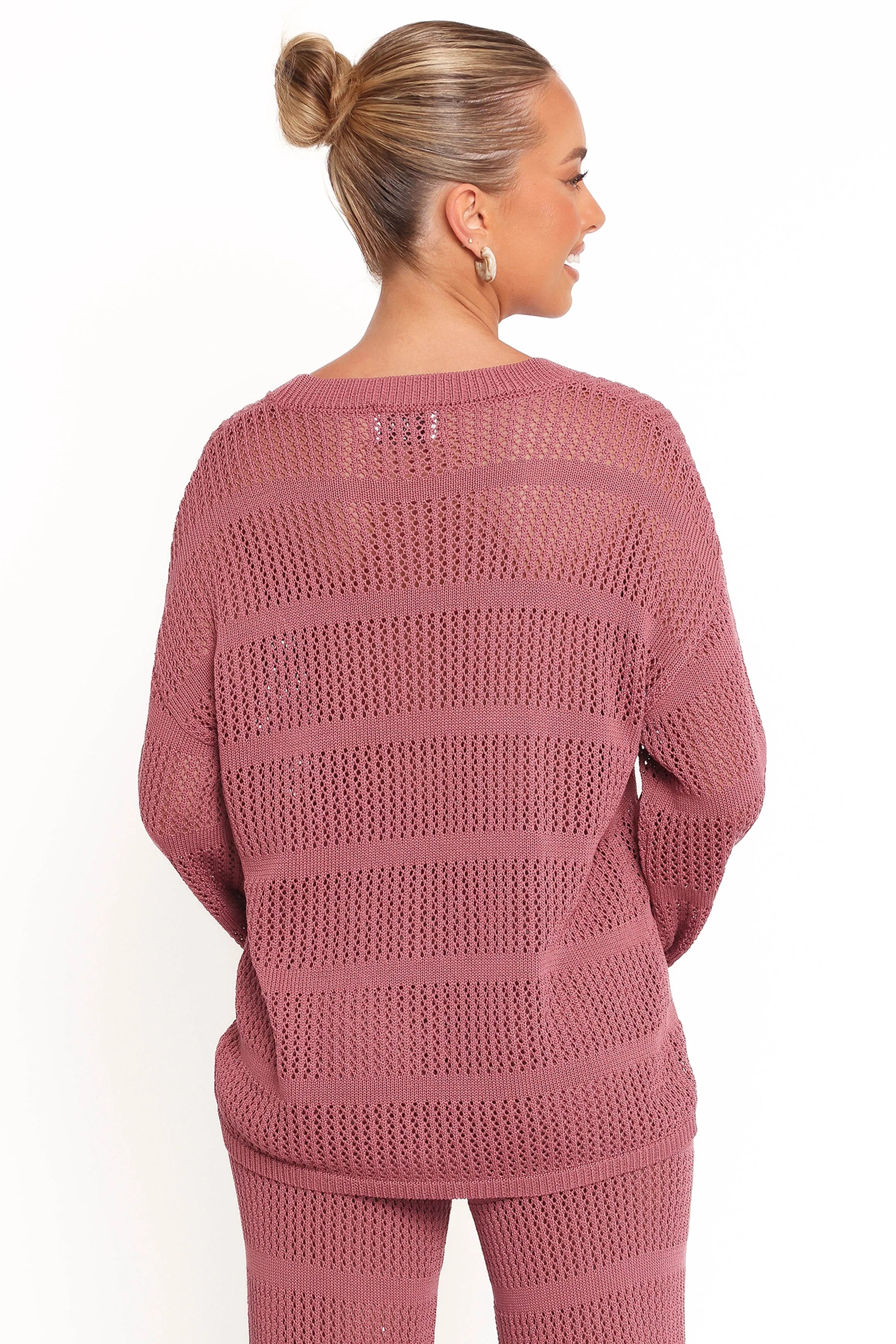 | DETAILS Breathe elegance into your wardrobe with the Crawford Top in Rose. With its chic round neckline, long sleeves, and intricately designed sheer crochet knit, this top is the perfect balance between effortless and elevated.