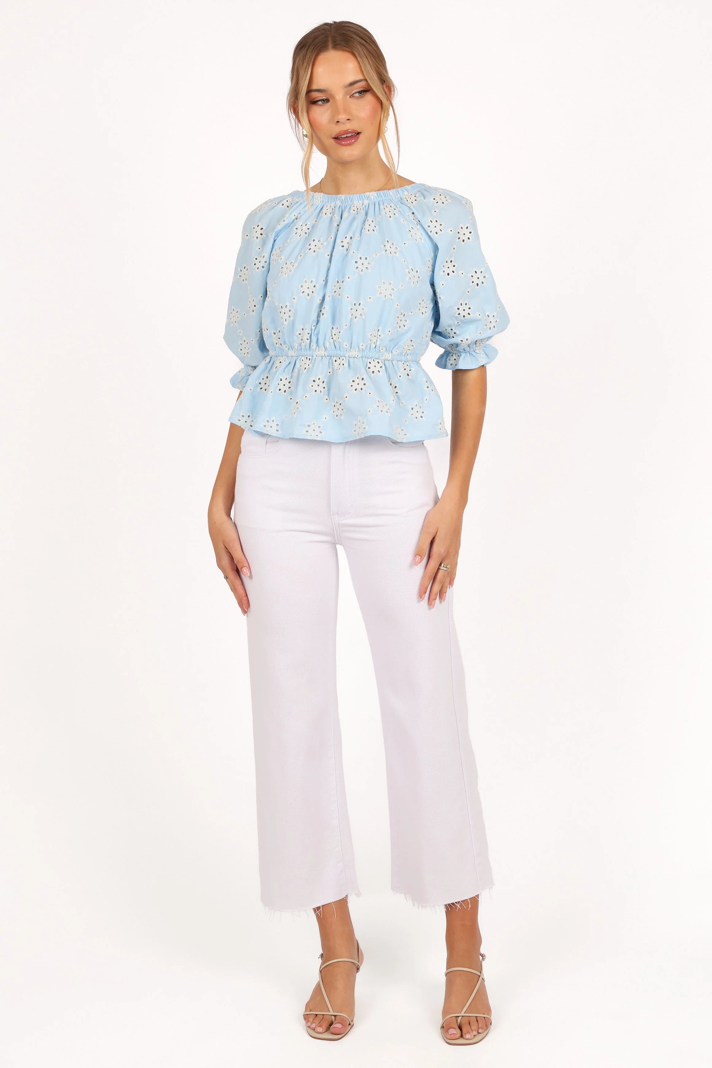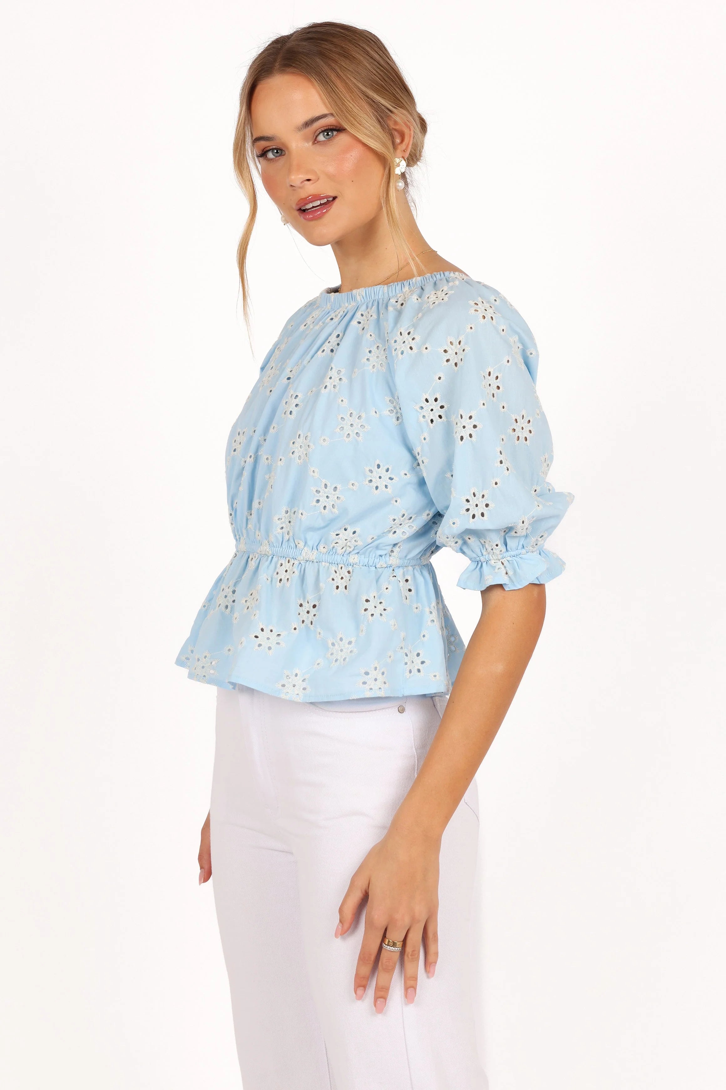 | DETAILS This peplum top is the perfect way to lend a touch of fresh style to your look! The classic round neckline and embroidered floral feature add just the right amount of detail, while the open back adds a modern touch.