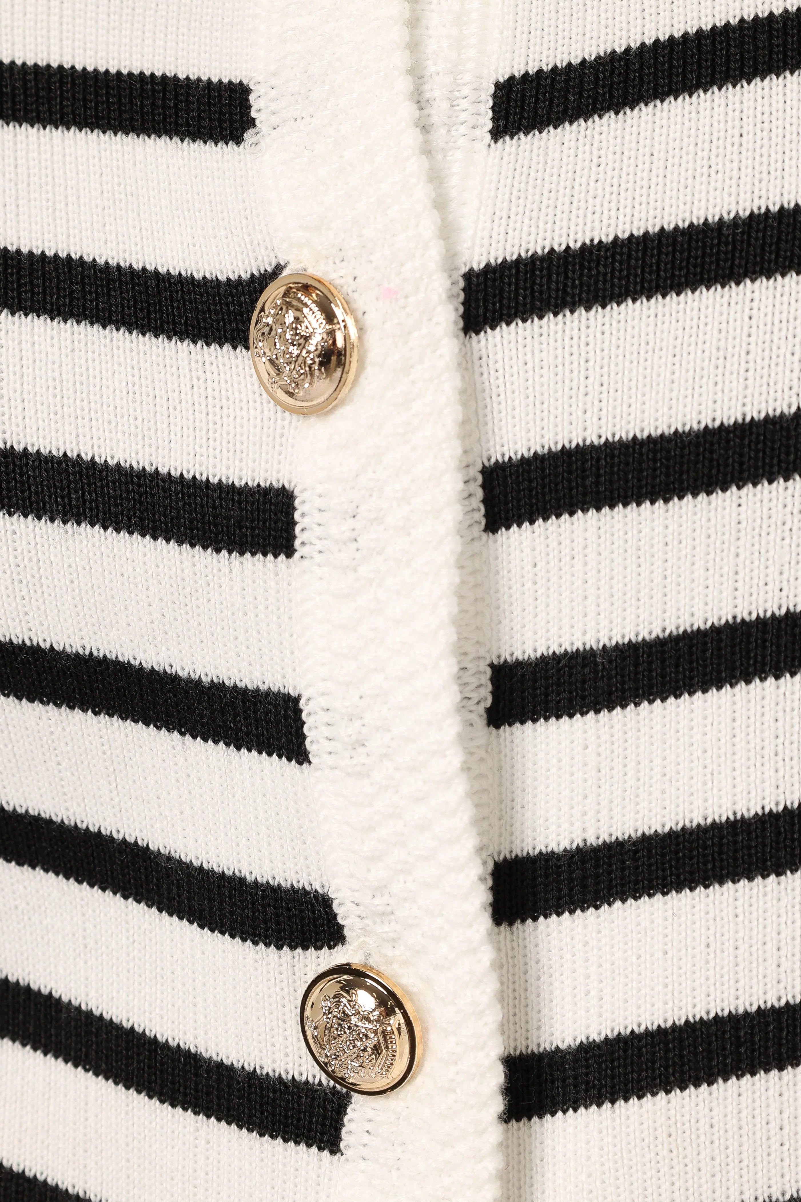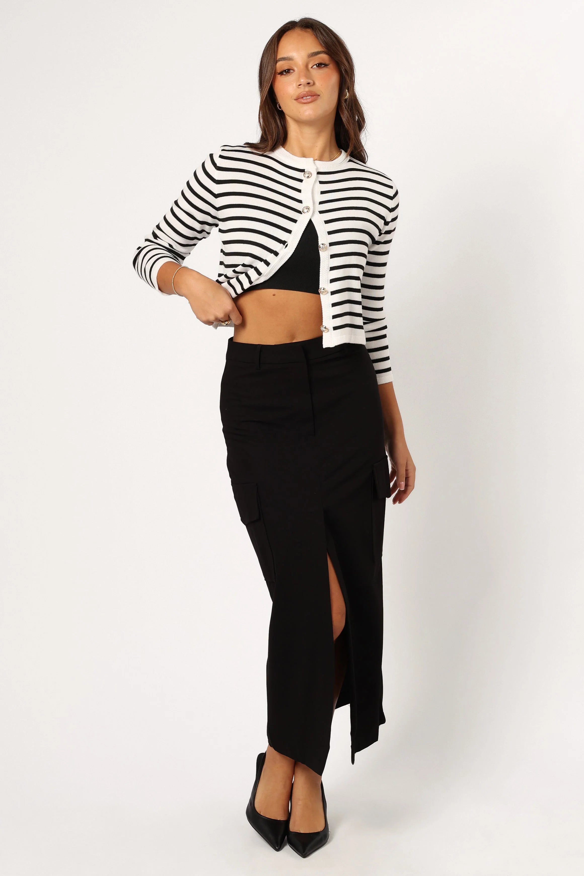 | DETAILS Designed with a flattering cropped length, this cardigan beautifully complements high-waisted skirts and trousers, adding a touch of elegance to your ensemble. The round neckline offers a versatile look that can be dressed up or down, making it perfect for various occasions.