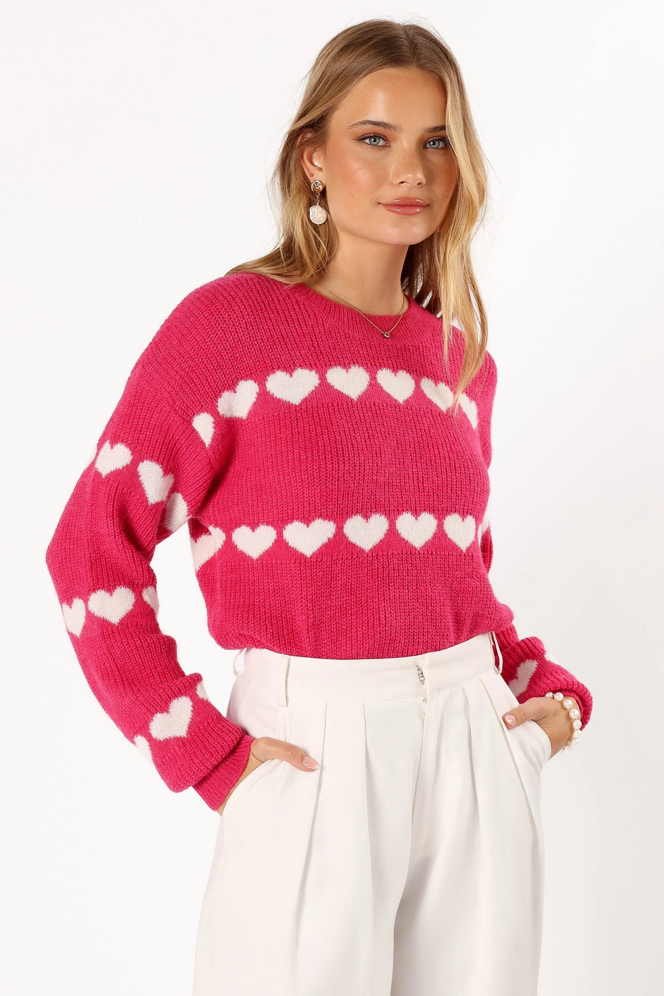 DETAILS This cozy knit sweater features a classic round neckline and long sleeves with ribbed cuffs. Perfect for pairing with your favourite jeans or skirt, it's an eye-catching piece that you'll reach for time and time again.