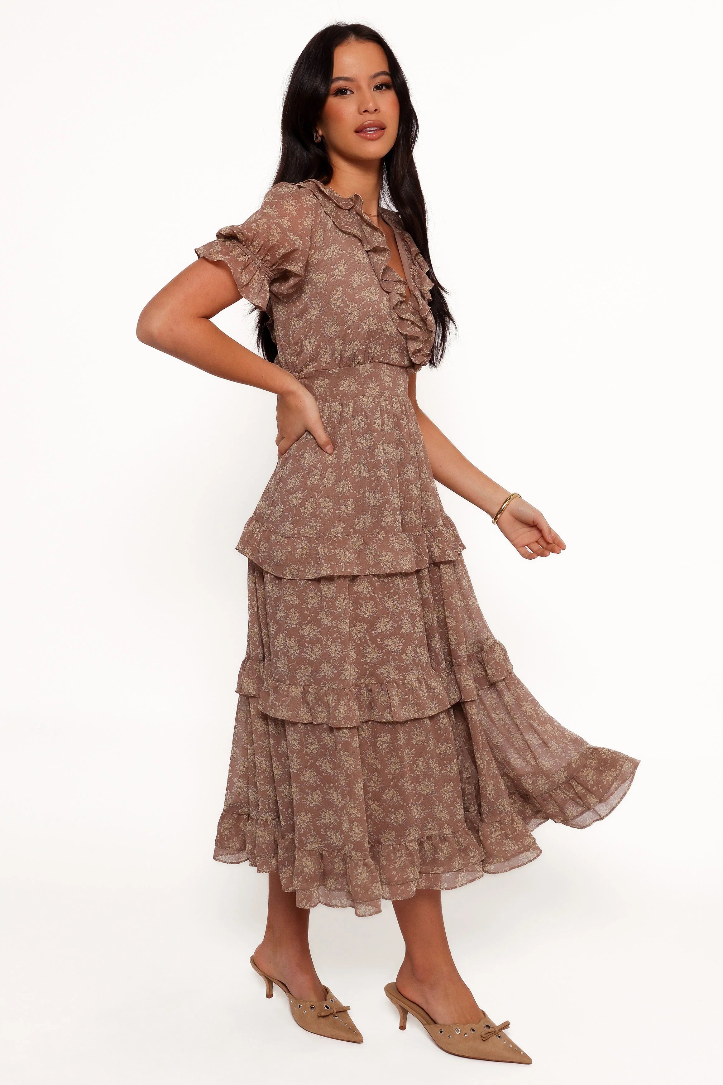 | DETAILS Turn heads with the stunning cut-out back, adorned with a corset-style lace-up bow that adds a playful twist to the dress. Delicate gathered frill detailing along the hem and sleeves adds texture and dimension, enhancing the overall feminine vibe of the dress.