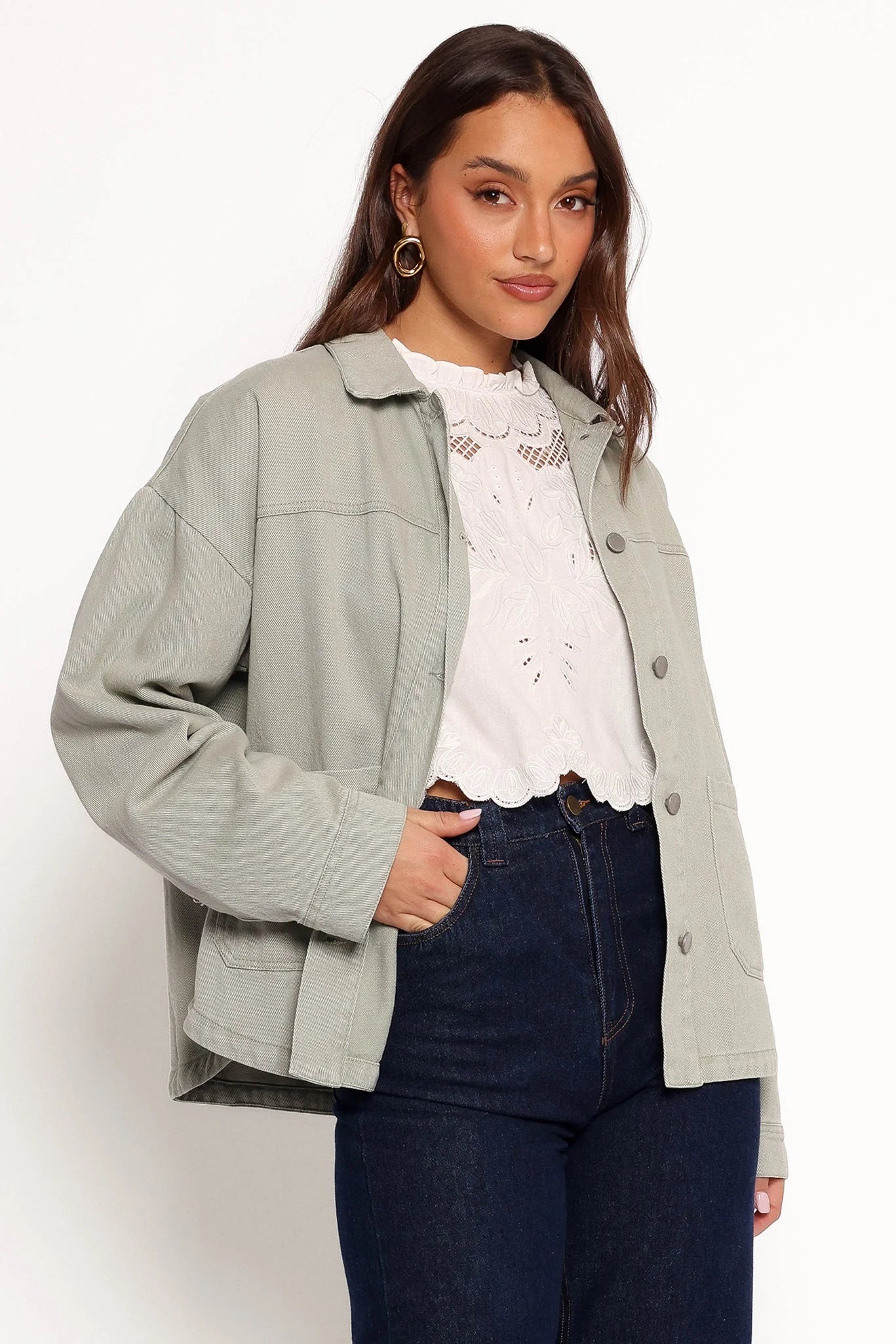 DETAILS The Delana Denim Jacket is the perfect addition to your wardrobe for a trendy look. Featuring button down front, and functional front pockets for style and comfort. But don't be fooled by its laid-back appearance, this jacket is also fashion-forward and can elevate any outfit.
