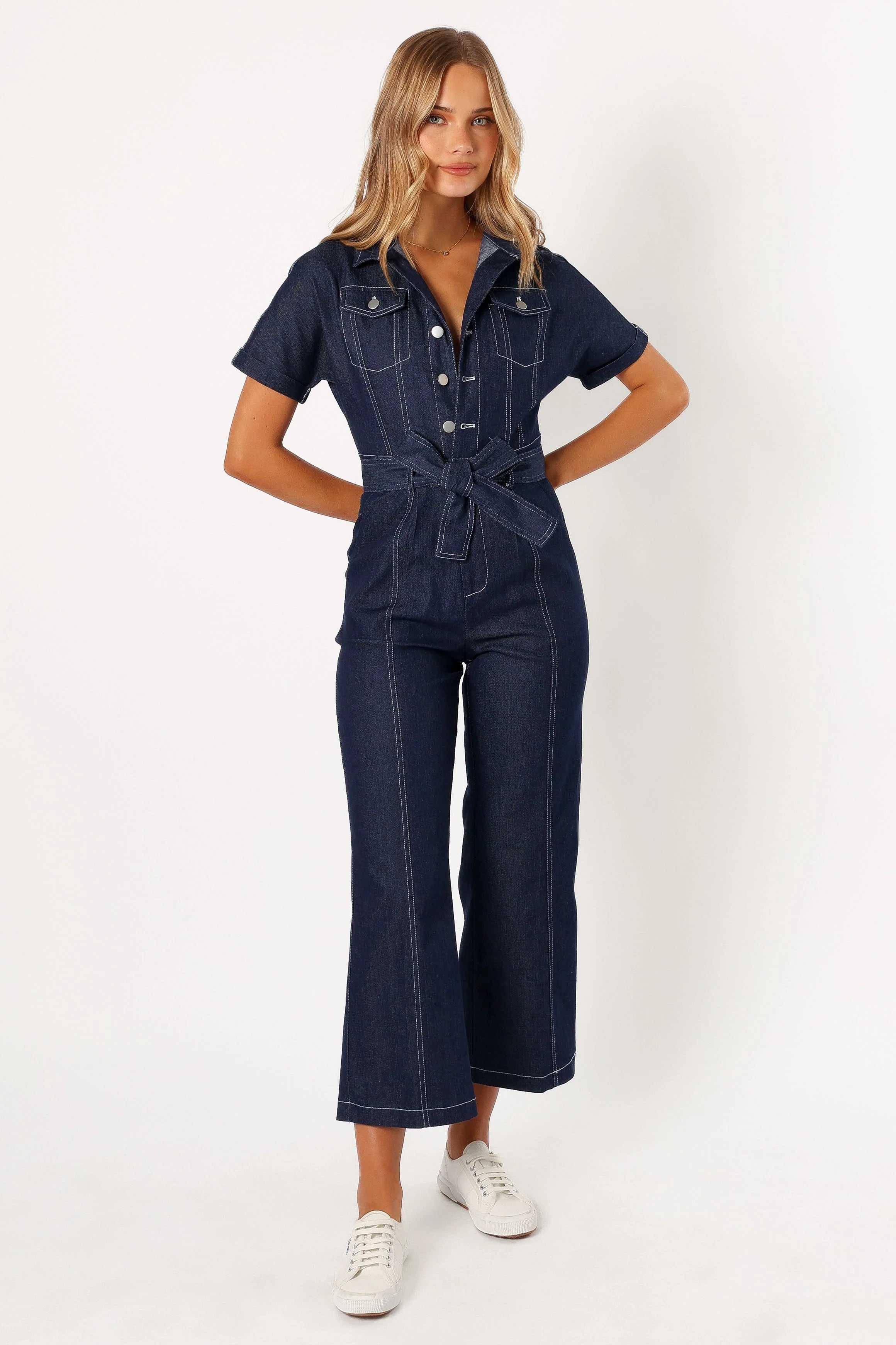 DETAILS Introducing the perfect addition to your casual wardrobe: our Denim Jumpsuit! With its V-neckline, collared neckline and short sleeves with rolled cuffs, this jumpsuit is sure to become your new go-to.