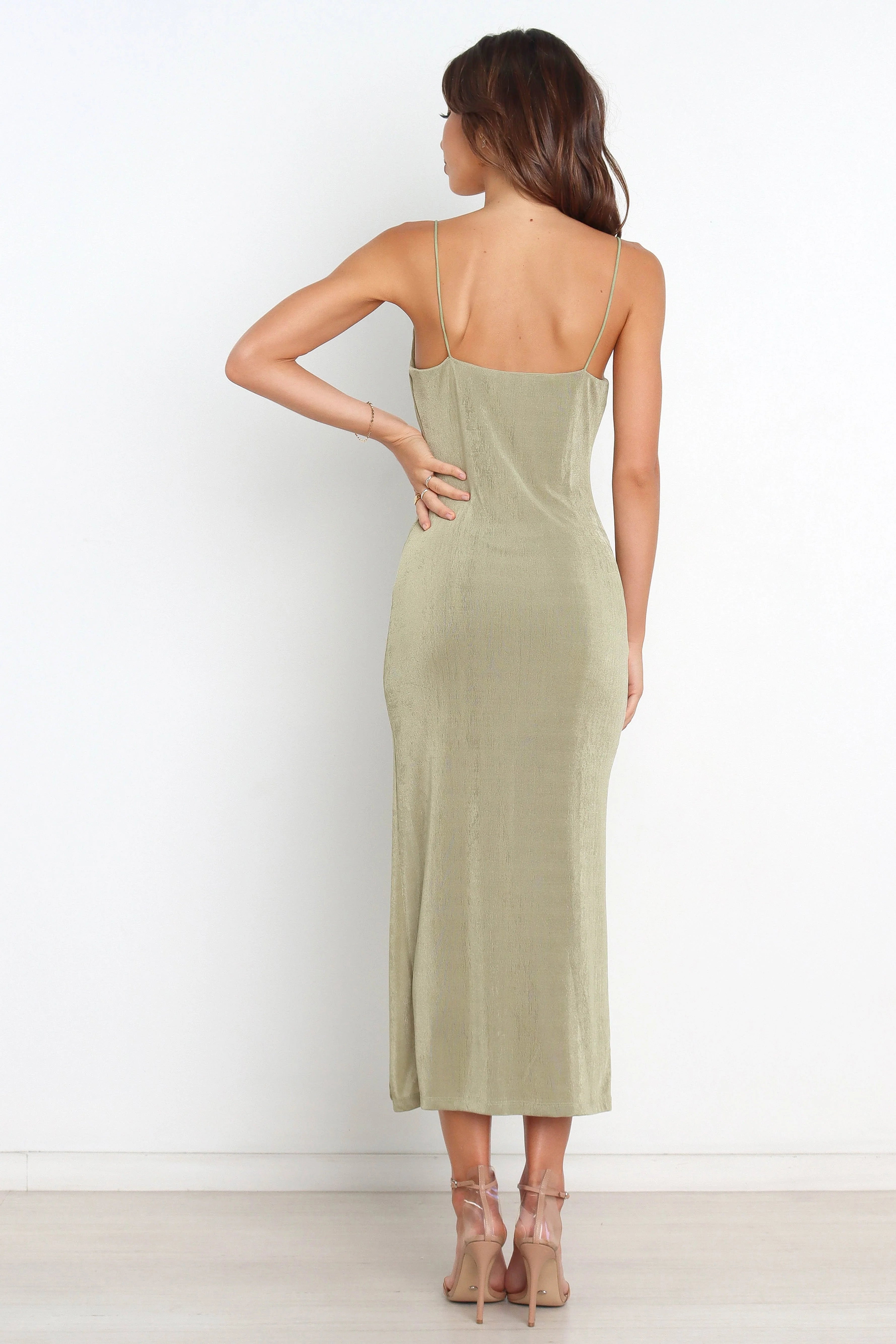 DETAILS If you're looking for the perfect party dress, then look no further! Our bodycon midi-length dress with cowl neckline, thin cami straps and a front split is the ideal choice. The shimmering sheen finish material will give you an added sparkle to your style on those special nights out.