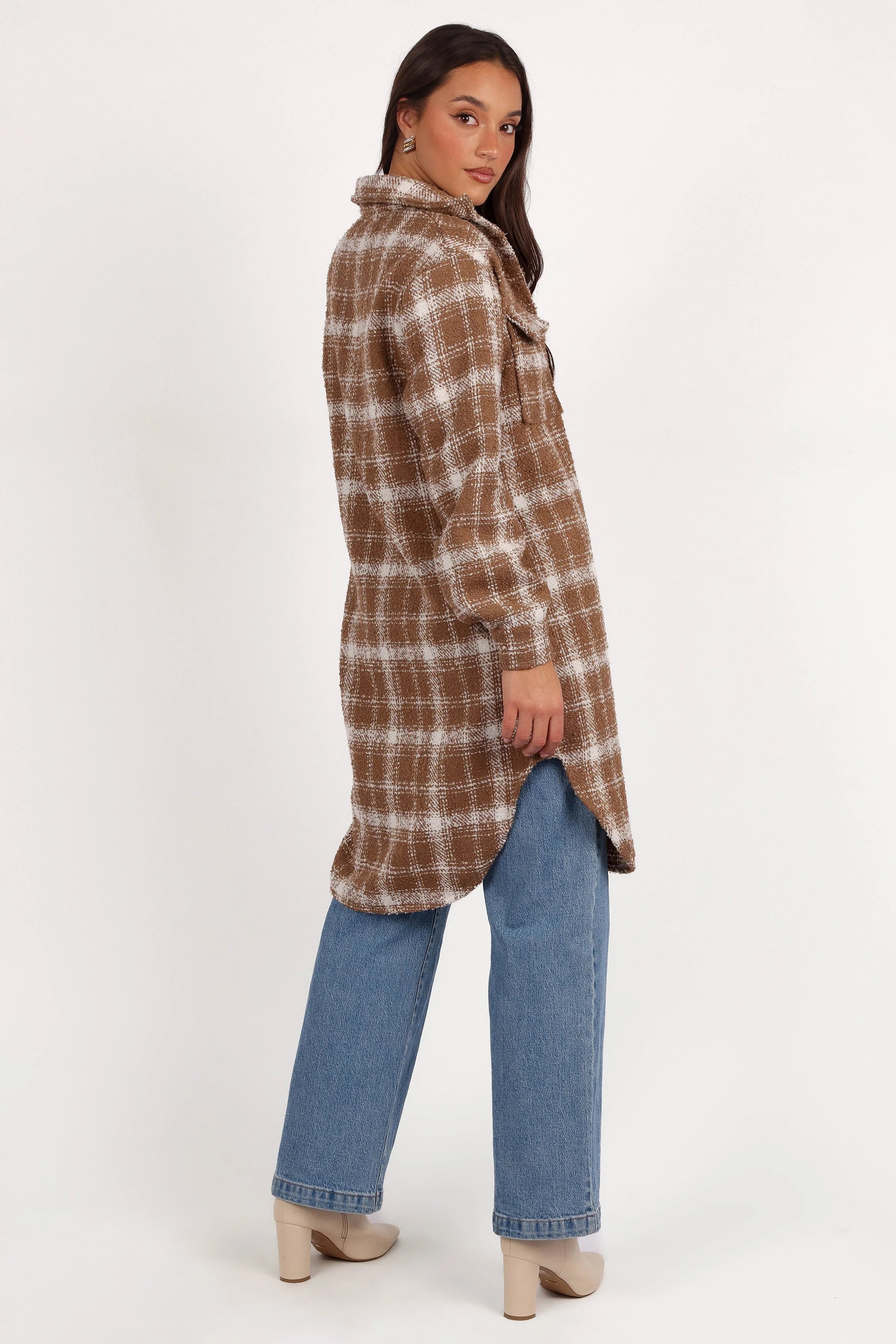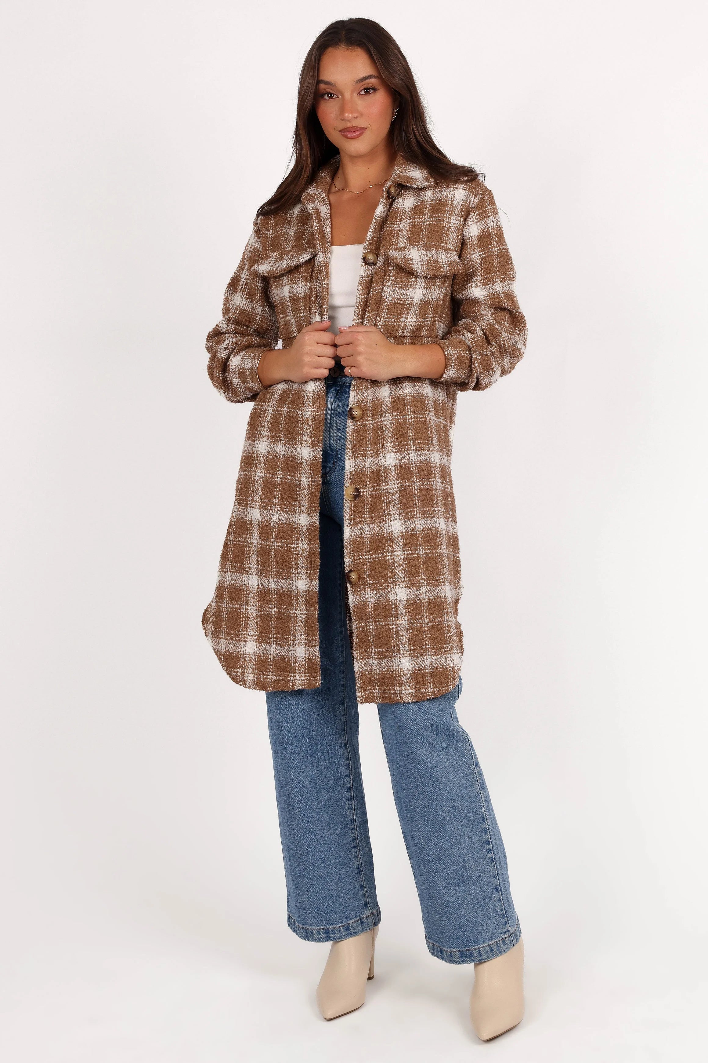 DETAILS Turn heads in this cute collared long-lined flannel shacket! It has a stylish design print, functional buttons down the front, and two functional front pockets. The long sleeves are finished with button cuffs for an extra fashion vibe.