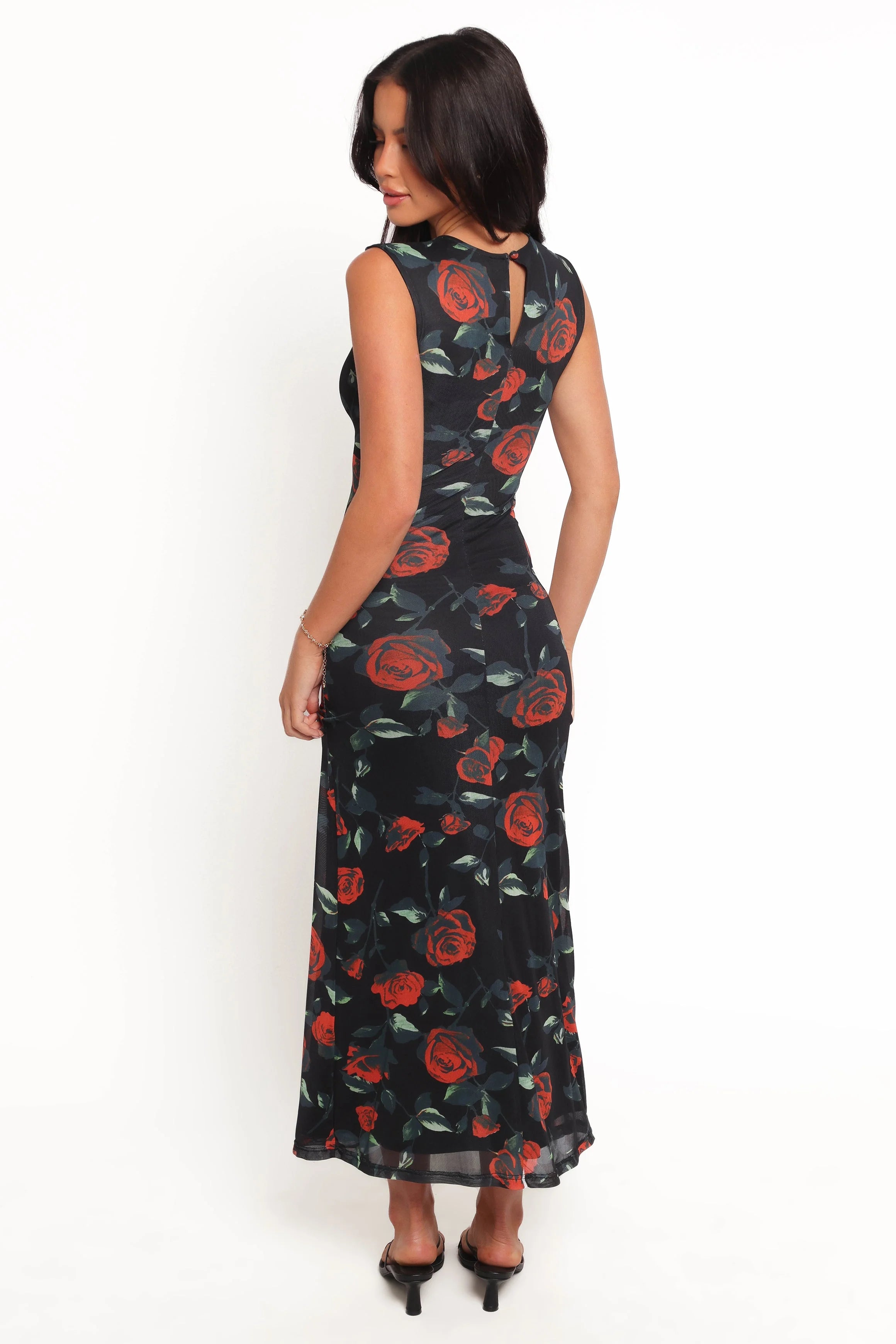 | DETAILS Turn heads effortlessly in the Drea Maxi Dress - Rose print. Designed with a chic bodycon fit, this maxi-length dress hugs your curves in all the right places while allowing ease of movement with its mid-stretch material.