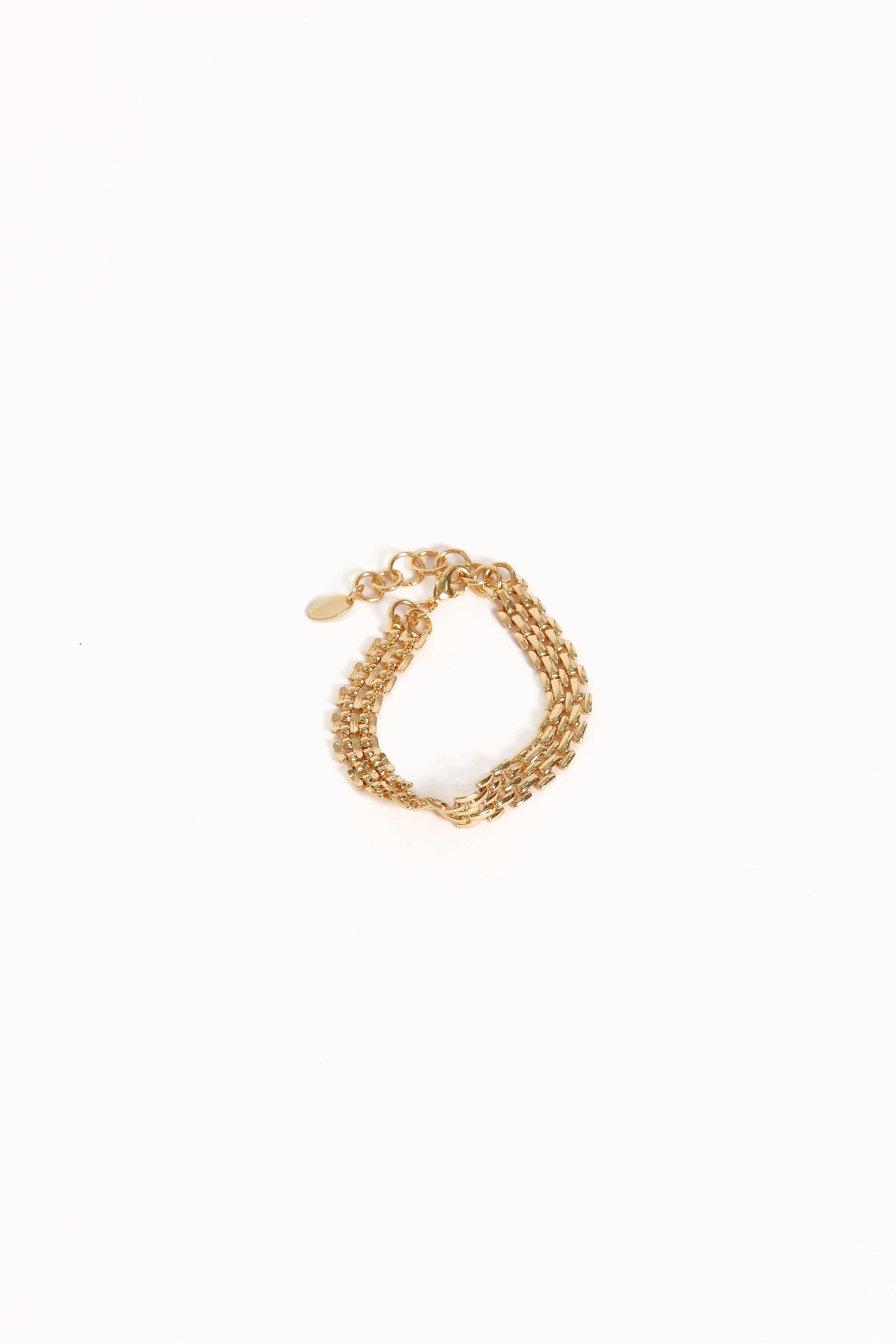 DETAILS Elevate your style with the Drew Bracelet in Gold, a perfect blend of timeless elegance and modern flair. Crafted with a woven mesh chain, this bracelet offers a delicate yet durable design that complements any outfit.