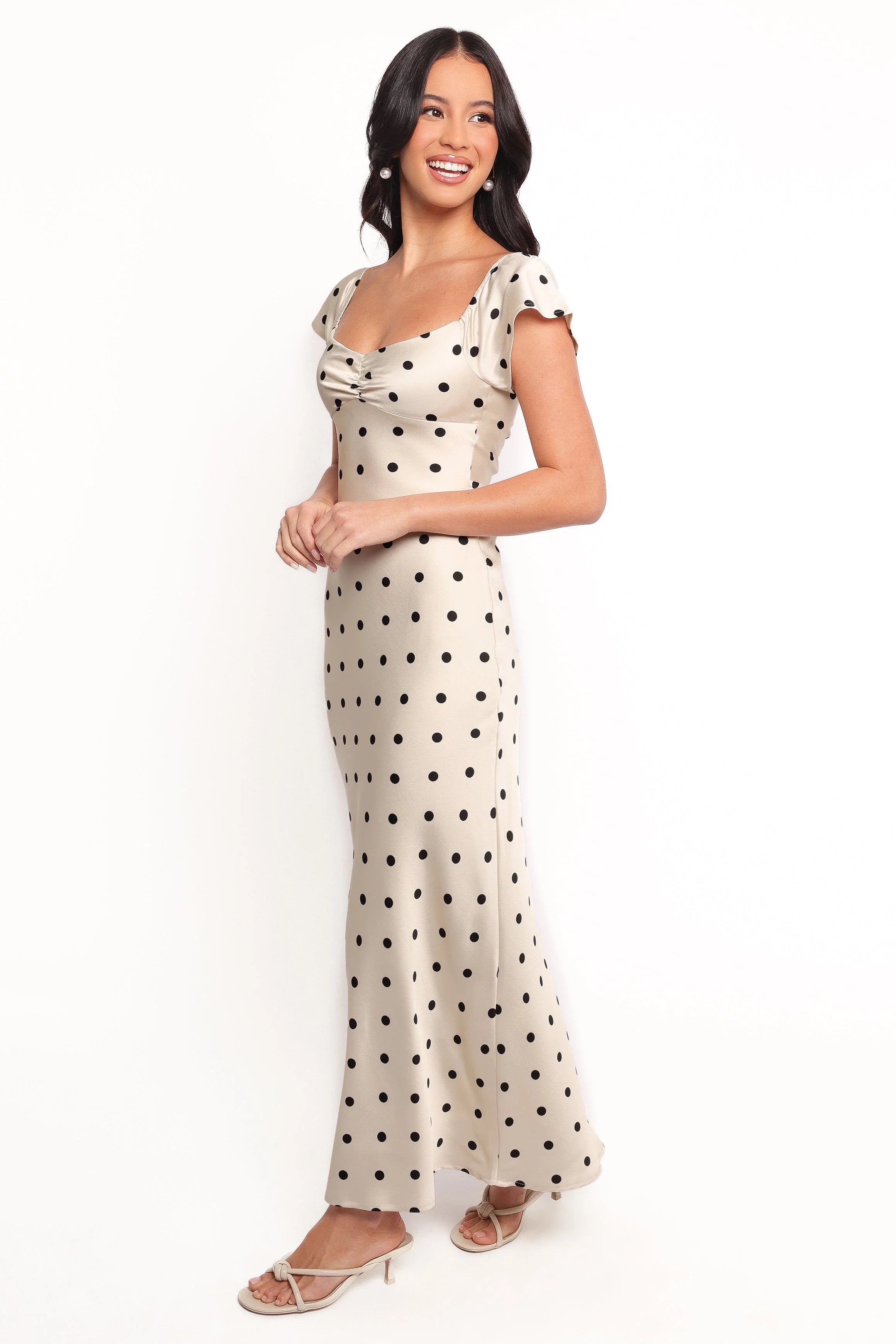 | DETAILS This stunning maxi dress cascades gracefully to a full length, offering an elegant silhouette that flatters every figure. With its round neckline and short cap sleeves, it's the epitome of modern chic, while the soft satin feel adds a touch of luxury to your ensemble.