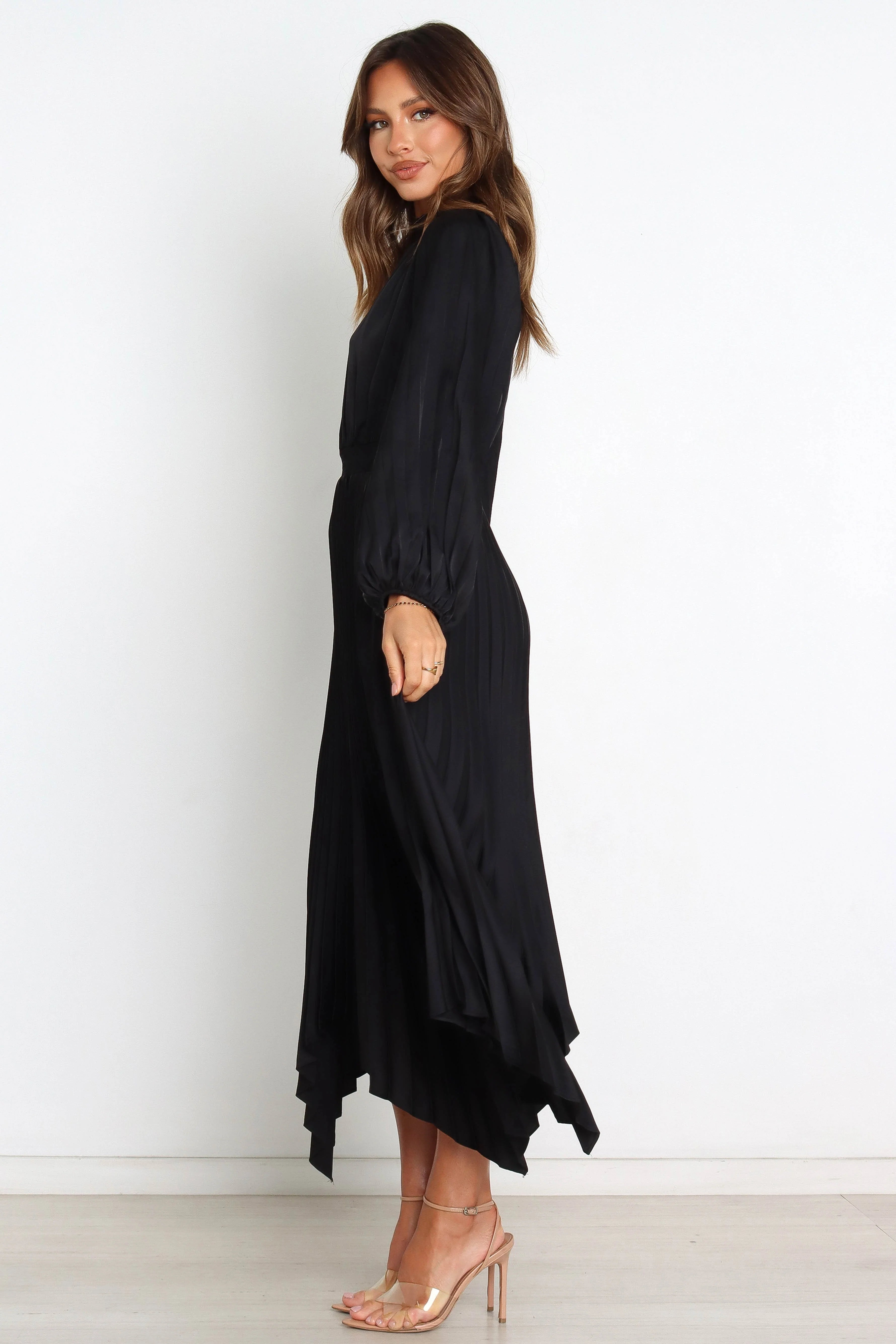 DETAILS Elevate your cocktail-ready look with this gorgeous maxi dress! The shirred high neck features a button close and front and back cut out detail, giving it an elegant yet flirty feel.