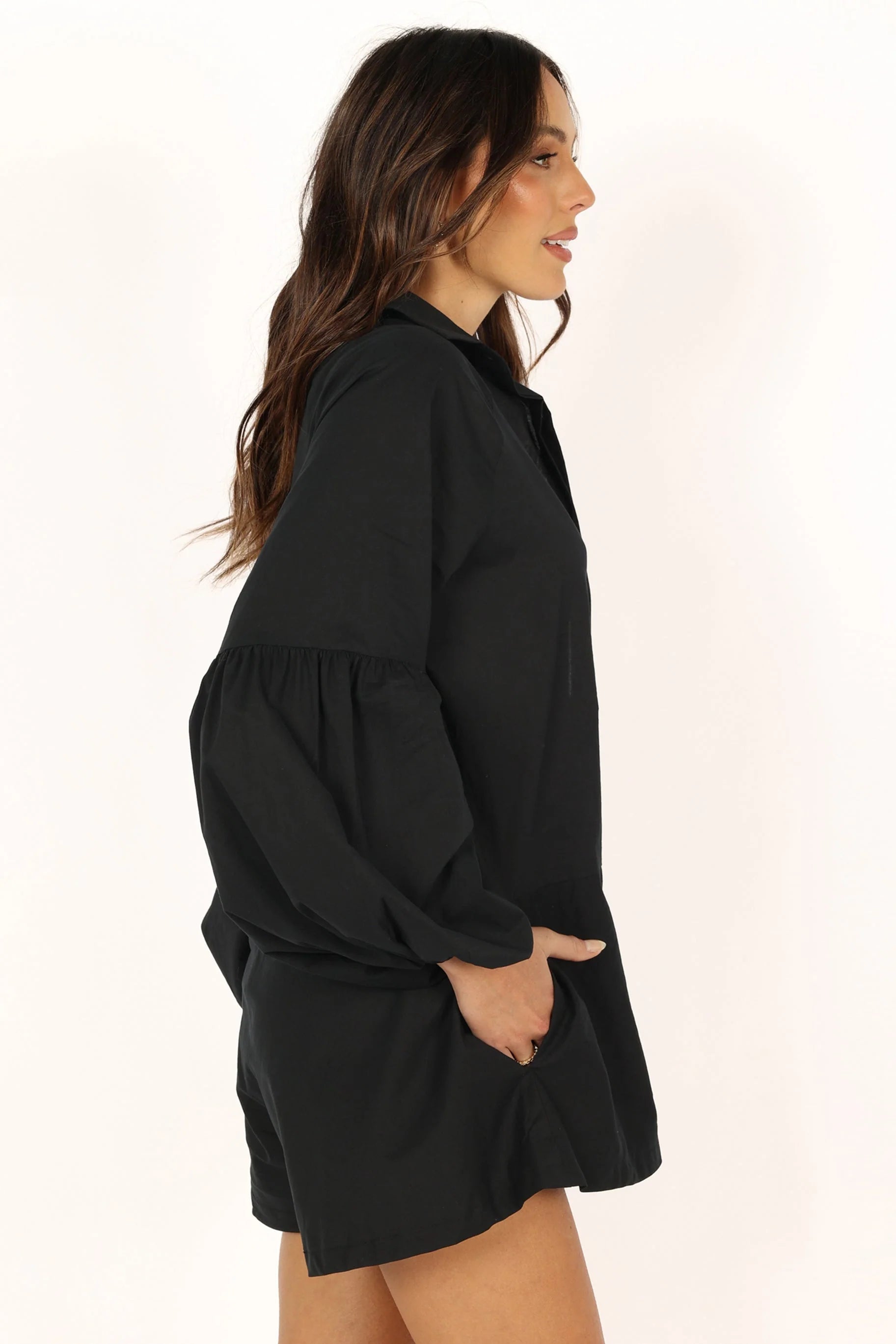 DETAILS This versatile playsuit is not only stylish, but also functional, with its side pockets and button front. Pair it with your favorite heels for a night out, or dress it down with sneakers for a casual daytime look.