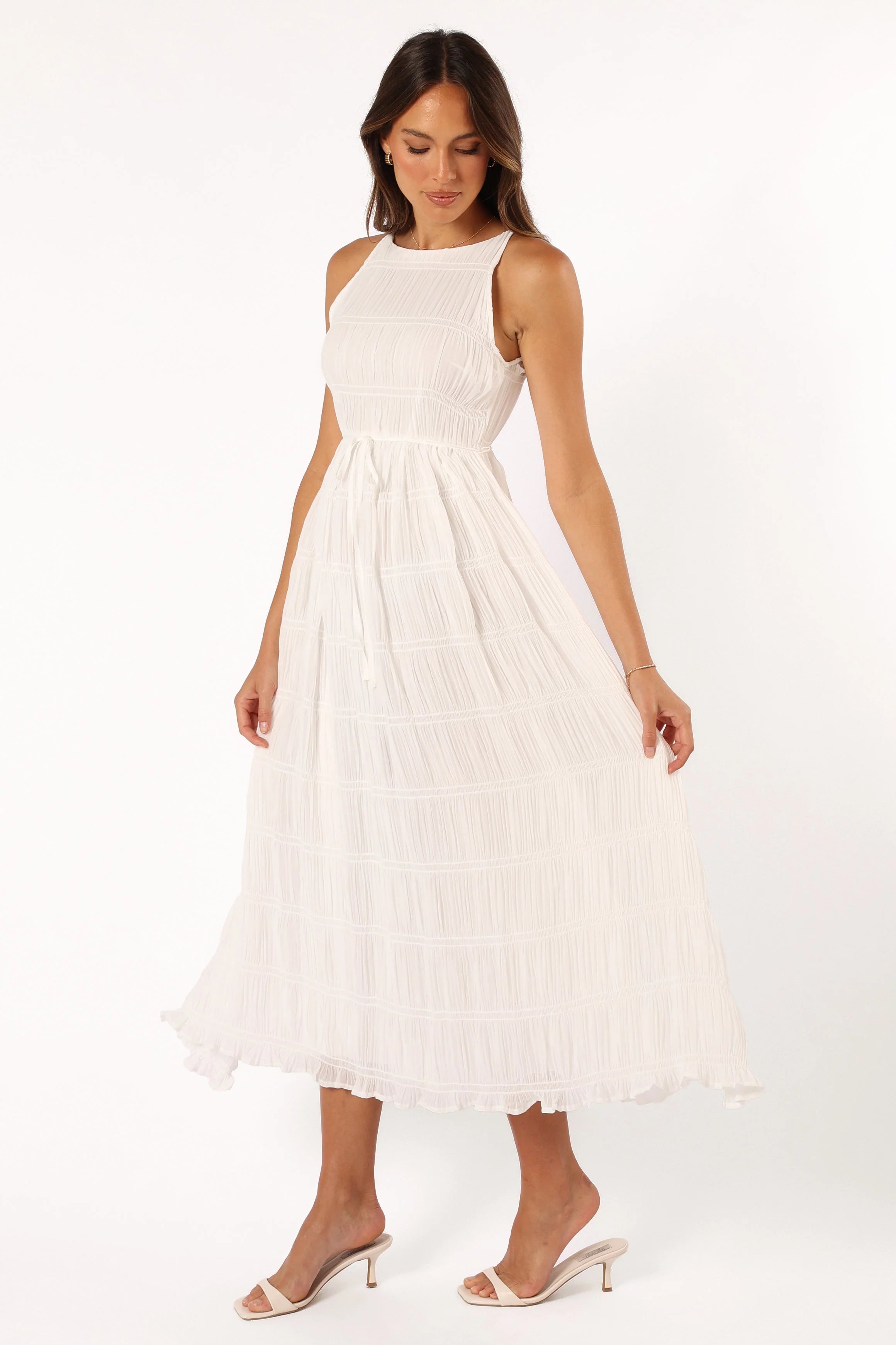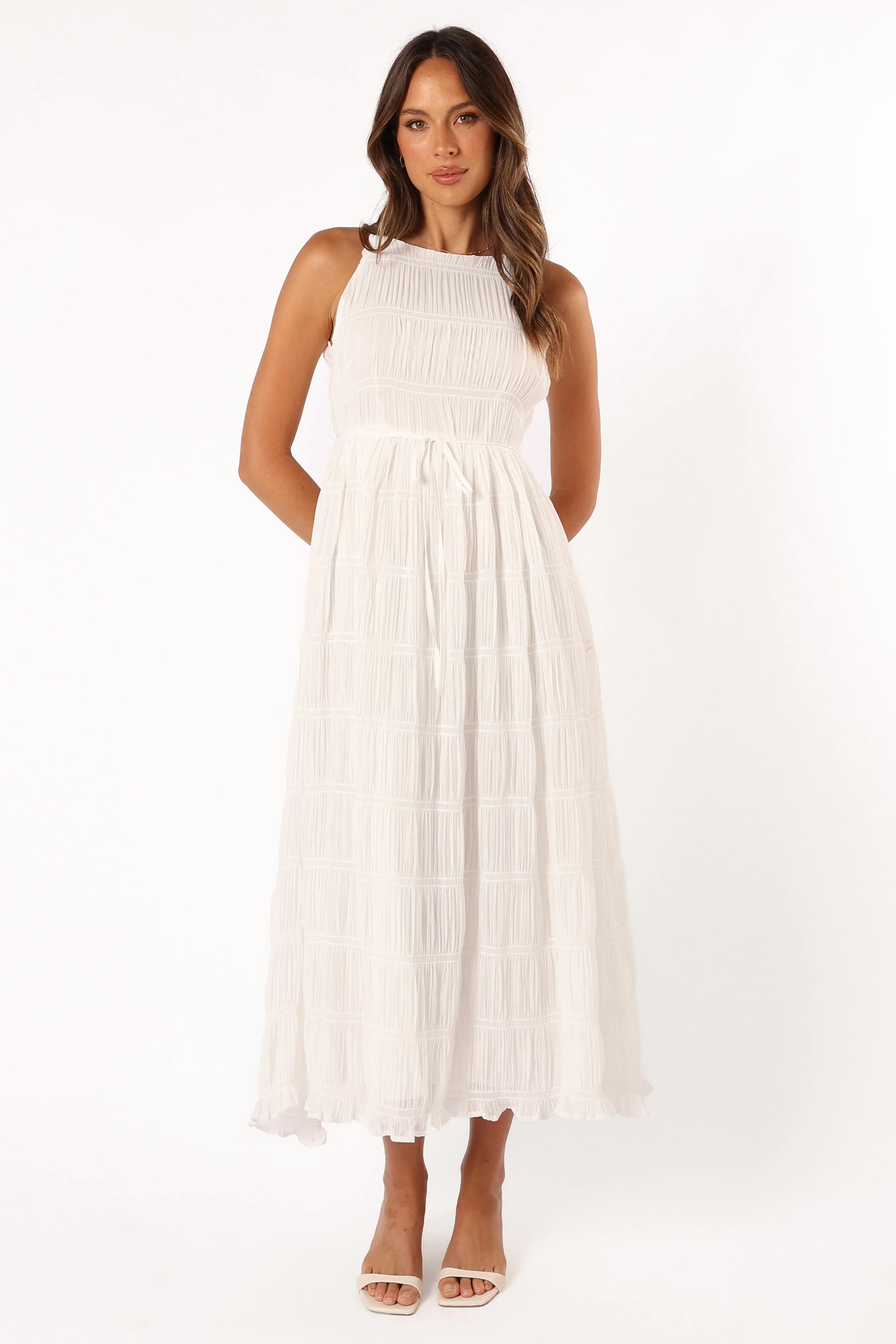 | DETAILS Embrace the serene sophistication of the Ema Maxi Dress, where timeless style meets modern design. Featuring a majestic maxi length that flows effortlessly as you move, the high round neckline adds a touch of classic poise, while the sleeveless design brings a contemporary edge.