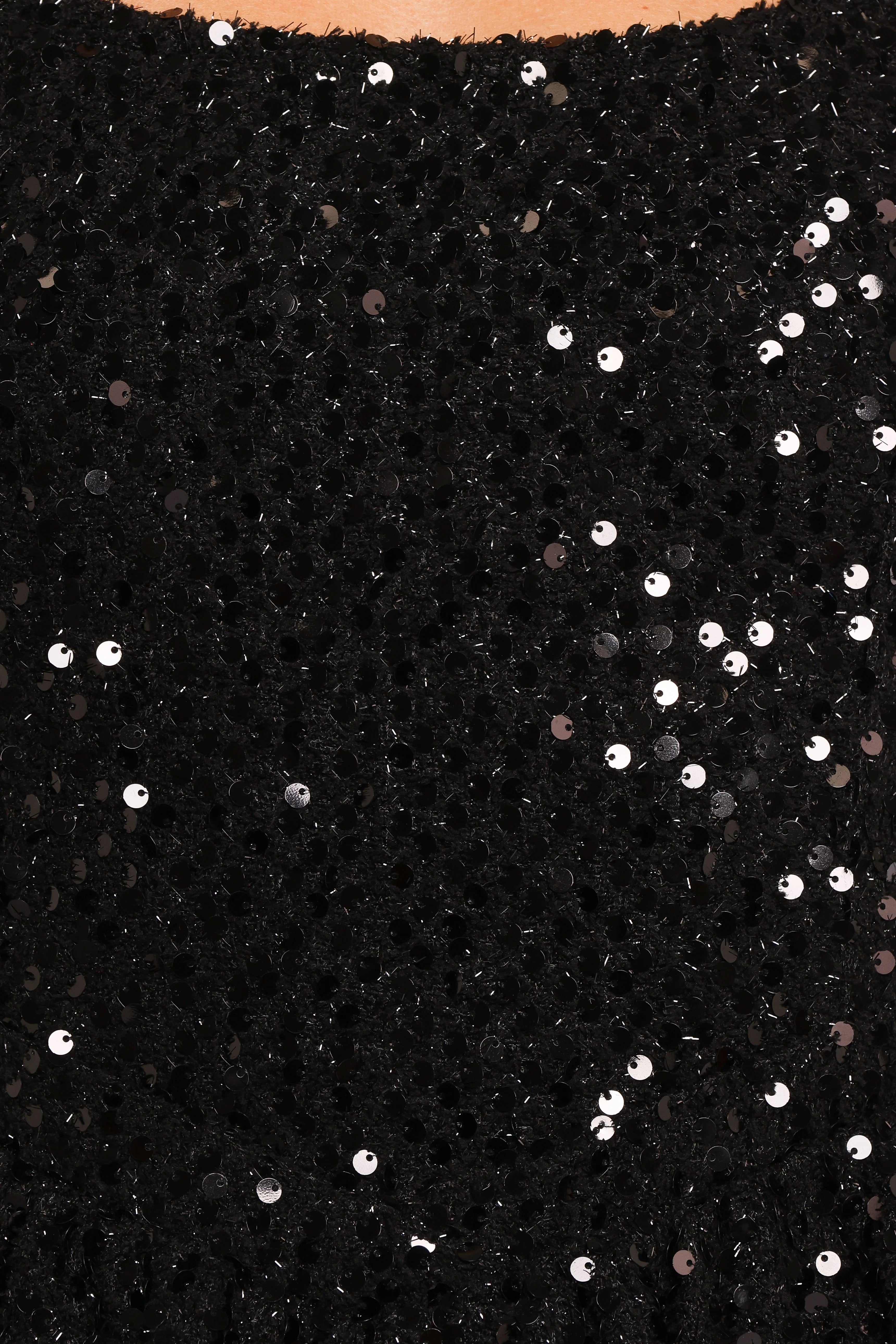 | DETAILS The Emma Midi Dress in Black is your new go-to statement piece that effortlessly combines elegance with a hint of sparkle. This stunning dress features a mini length design while the delicate sequin detailing catches the light just right, adding a touch of glamour to your ensemble.