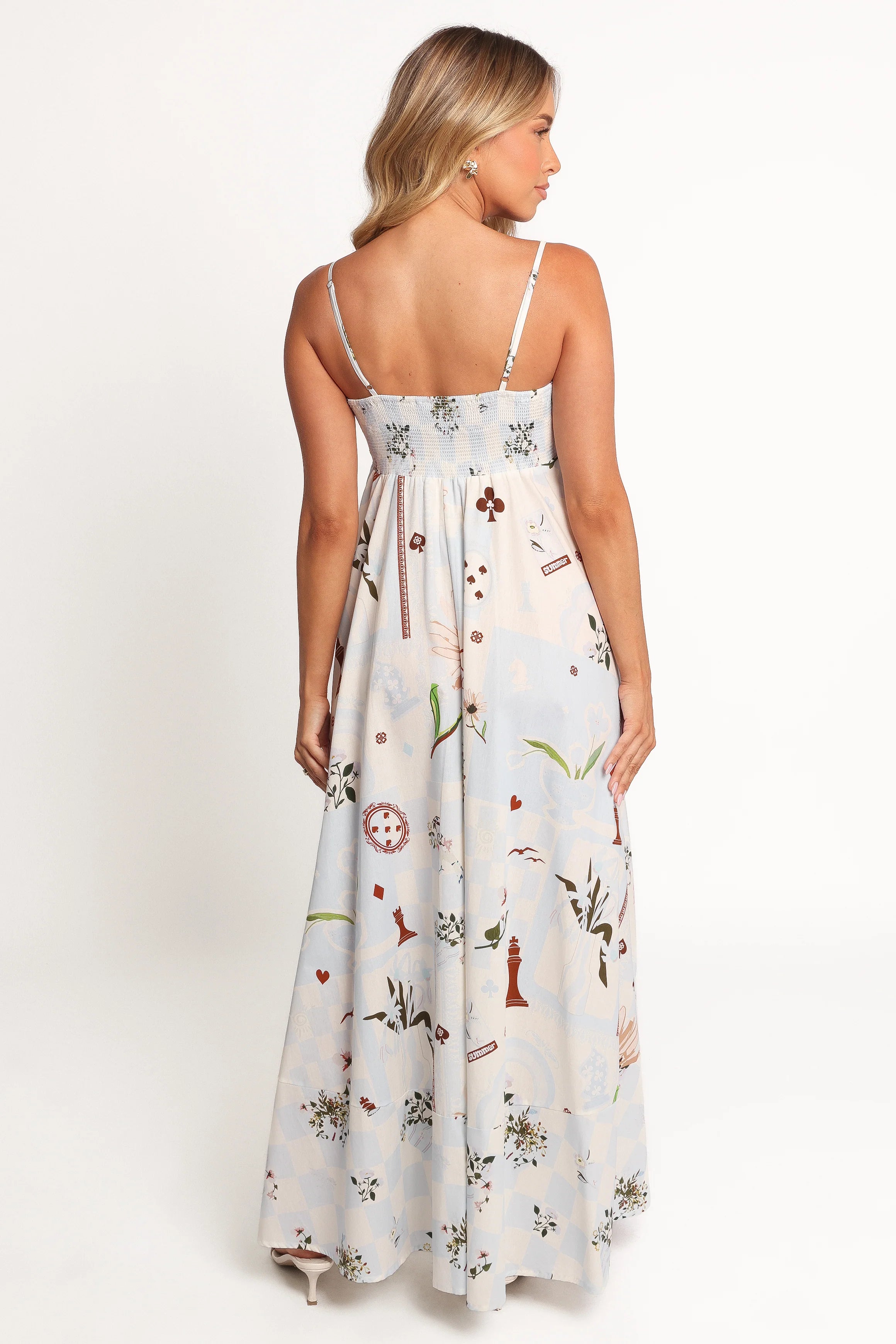 DETAILS Breeze through your day in effortless style with the Emmeline Maxi Dress in Blue Floral. This stunning maxi-length dress features an empire waistline that creates a flattering silhouette, while its square neckline and thin adjustable straps give it a minimalist, modern edge.